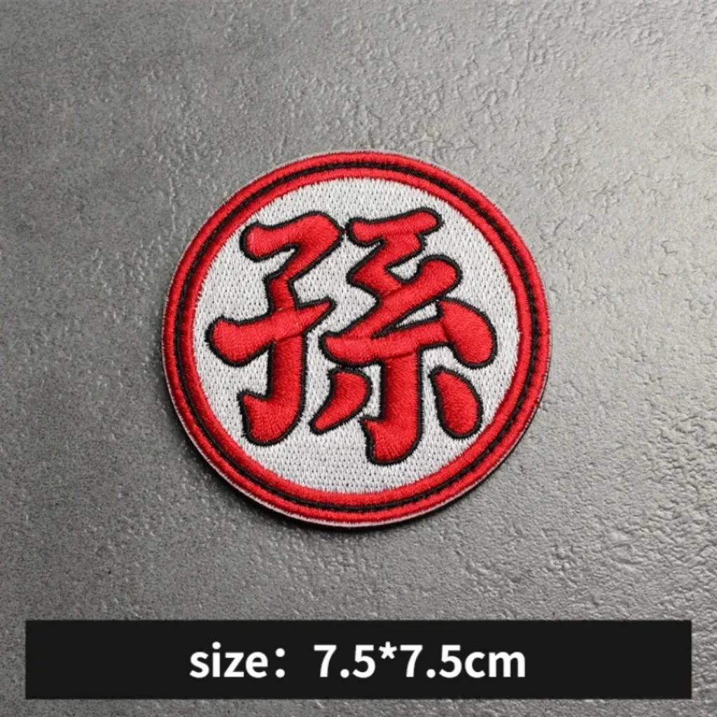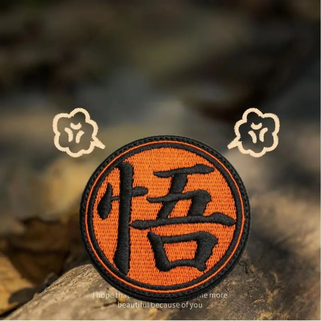 Nuevo Anime texto creativo parches bordados 3D personajes circulares chinos Wu Sun Goku Hippie insignia cultural mochila sombreros parche