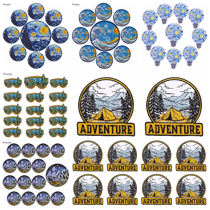 Parches Bordados para Acampar, Parches de Planchado para Ropa, Pegatinas de Van Gogh para Costura al Aire Libre, 10, para Exteriores