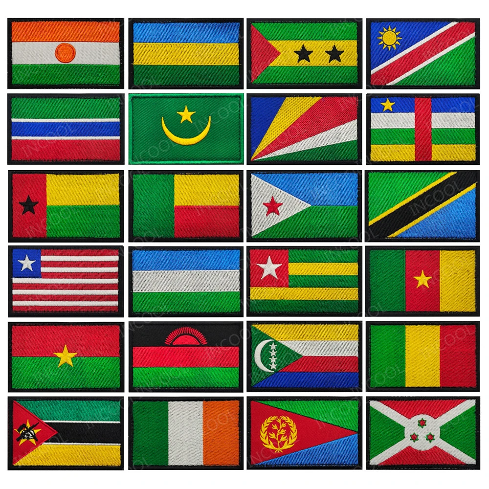 Parches bordados africanos, Marruecos, Nigeria, Argelia, Seychelles, Botswana, Gabonés, Libya, Mauritania, Djibouti, insignias de banderas de Namibia
