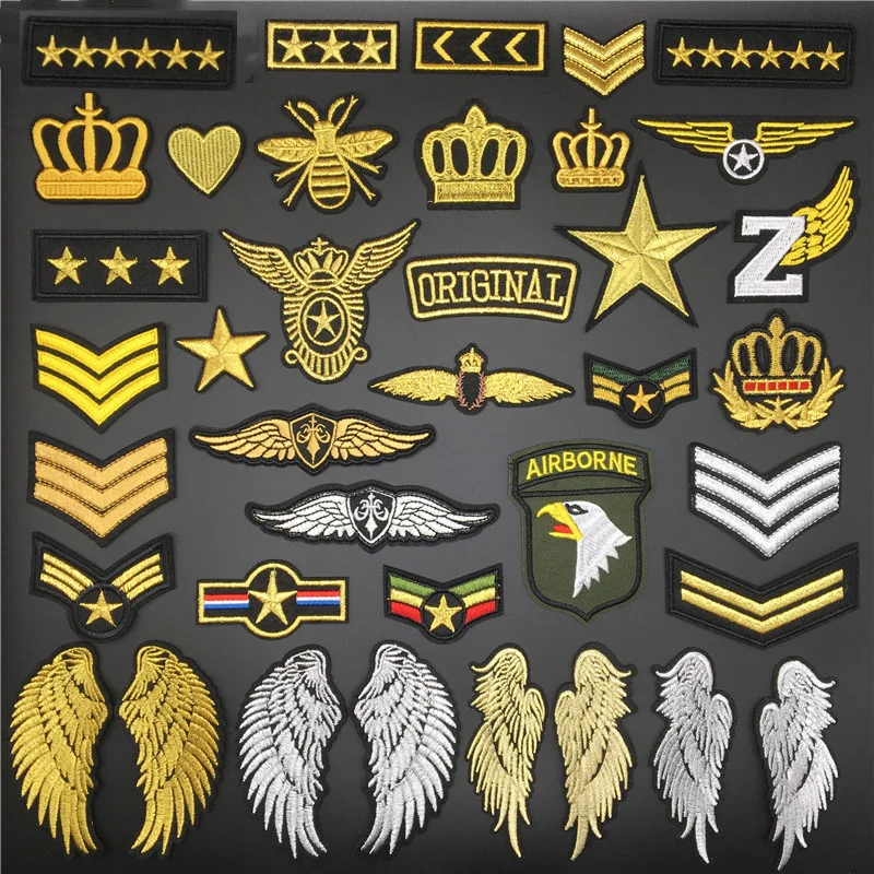 Parches bordados con alas de corona para ropa, apliques de costura para planchar Diy, insignia de ropa, pegatinas de rayas para mochila
