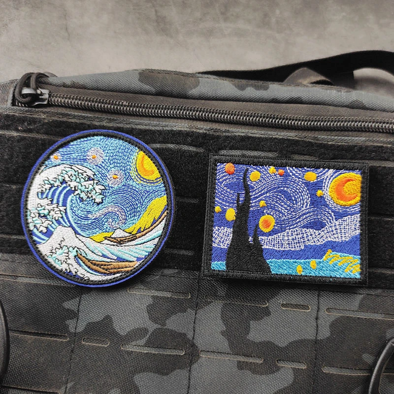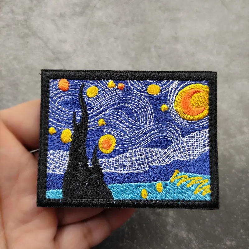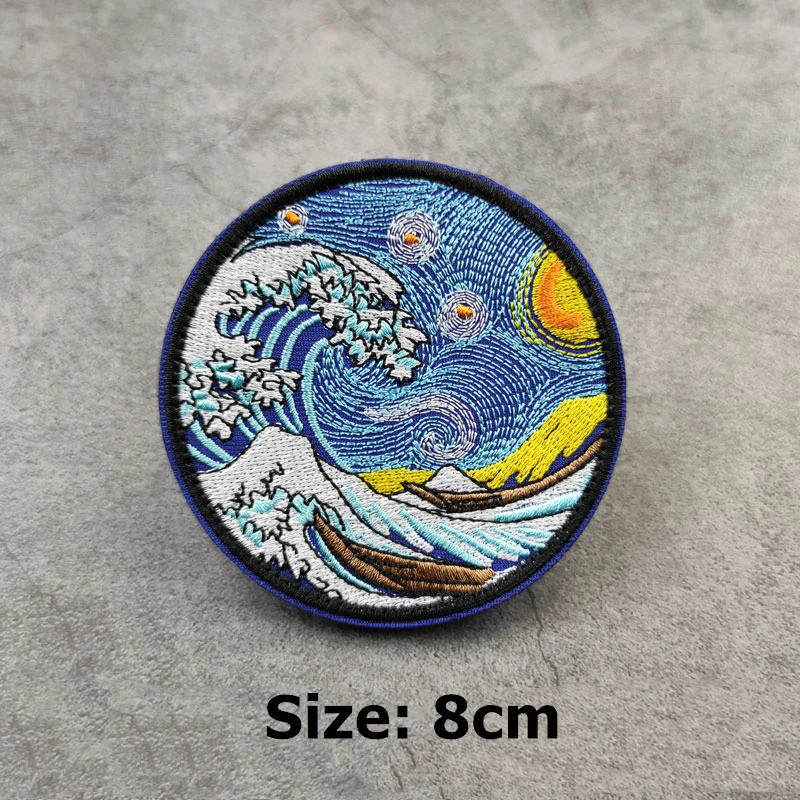 Parches bordados de algas marinas, pegatinas de paisaje abstracto artístico para ropa, chaquetas, accesorios de bricolaje, cielo estrellado, olas del océano