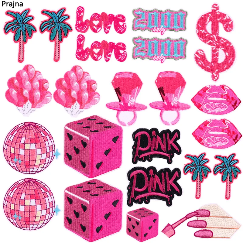 Parches bordados de anillo de dados rosas de dibujos animados para ropa, parches para planchar para ropa, pegatinas de costura DIY, insignias, 5 piezas, nuevo