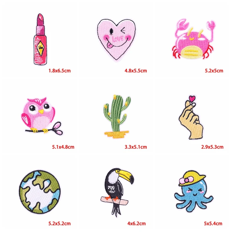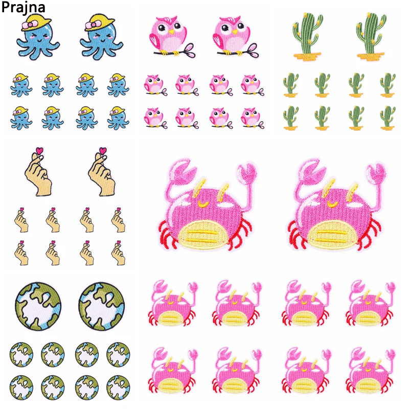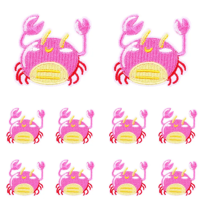 Parche de Animal/Cangrejo para Ropa, Parches Bordados para Planchar con Dibujos Animados DIY, Termoadhesivos, para Fijación de Animales y Pájaros, de 10, para Manualidades