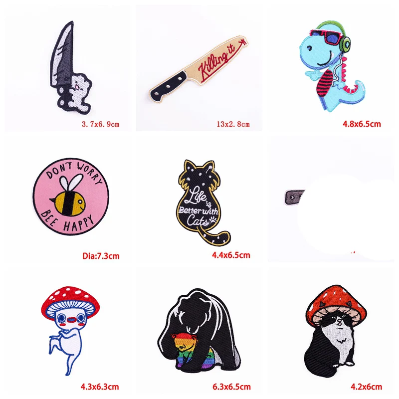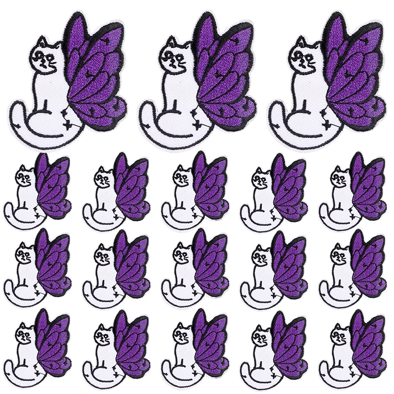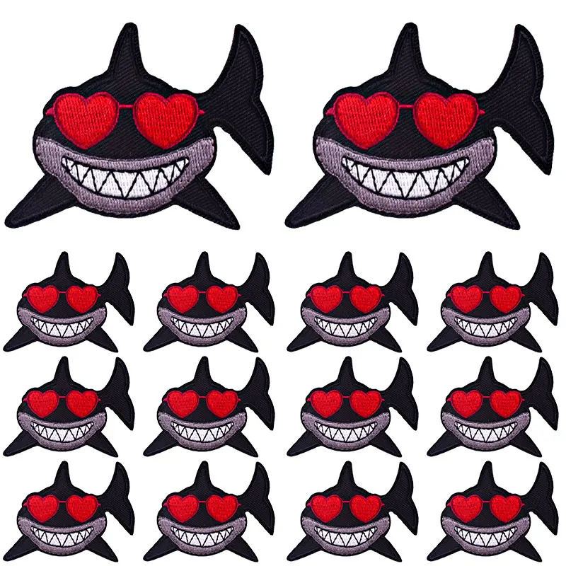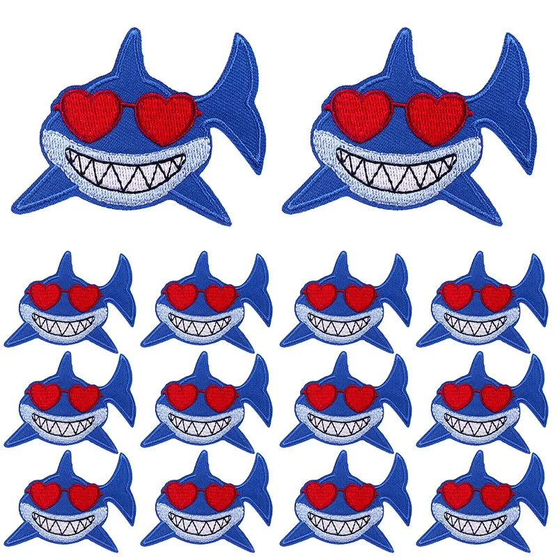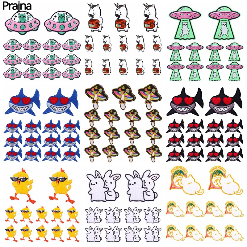 Parches bordados de animales para coser en la ropa, dibujos animados, gato, tiburón, parches para planchar, bricolaje, 10 unids/lote