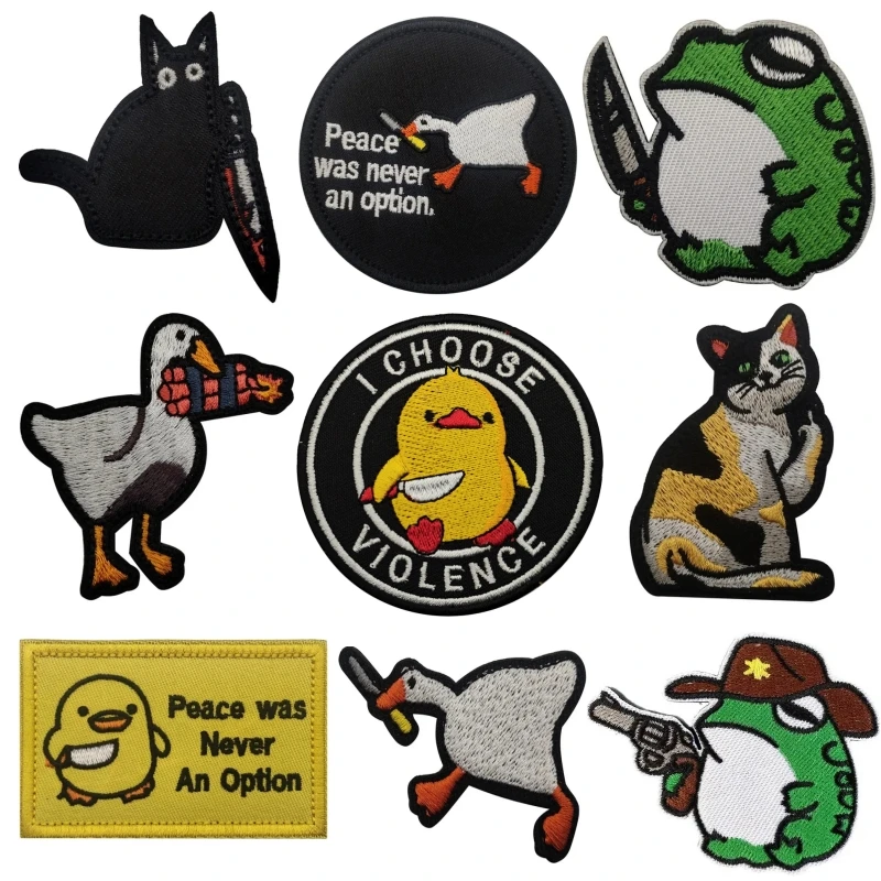 Bonitos parches bordados de animales de dibujos animados gato con cuchillo pato ganso Rana pegatina accesorio táctico insignias de moral parche de gancho y bucle