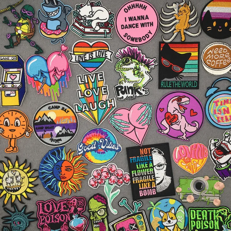 Parches bordados de animales de dibujos animados para ropa, Parche de costura, parches de hierro para ropa, Punk parche bordado, pegatinas, insignias