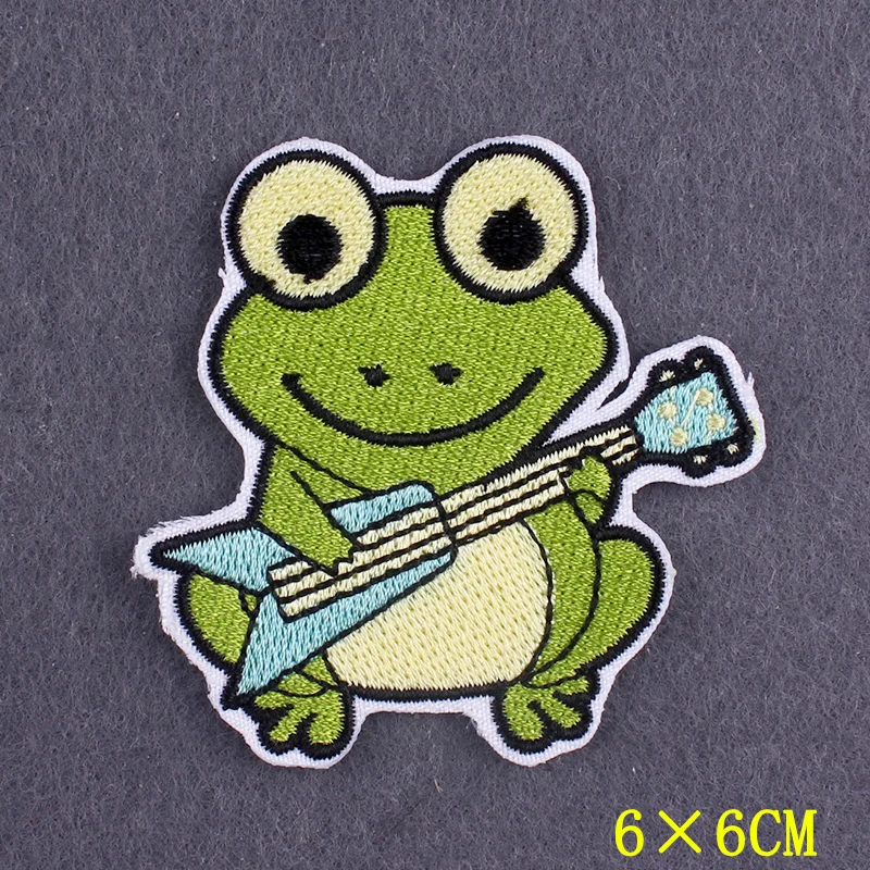 Parches bordados de animales divertidos en la ropa, parches de hierro de rana bonita para ropa, rayas, cosas de dibujos animados, parches para ropa, decoración