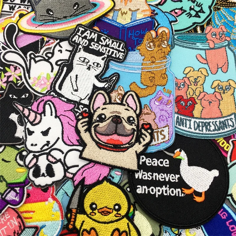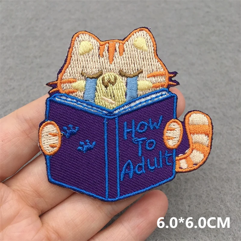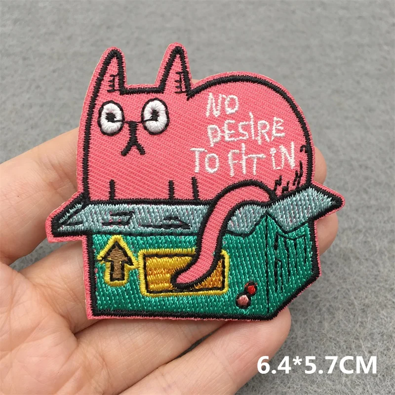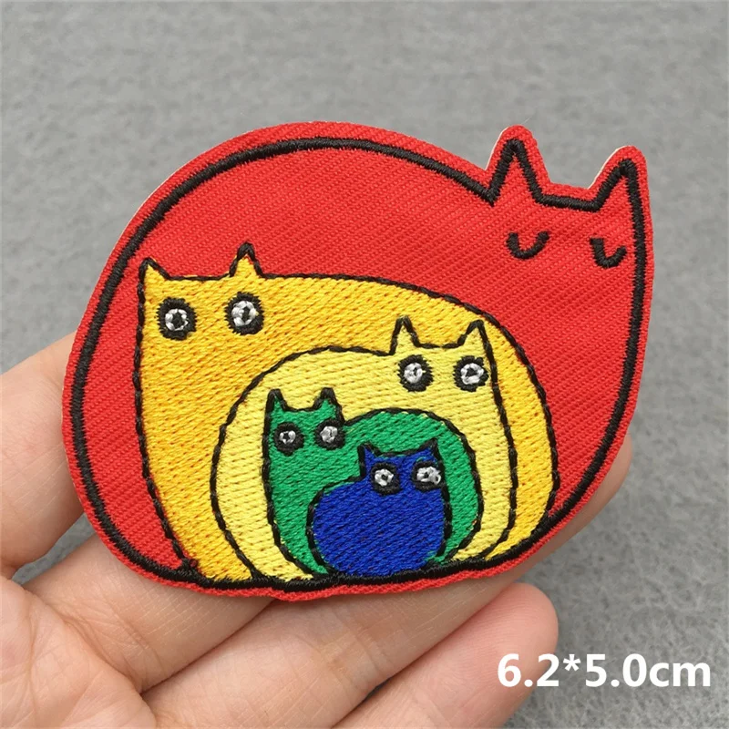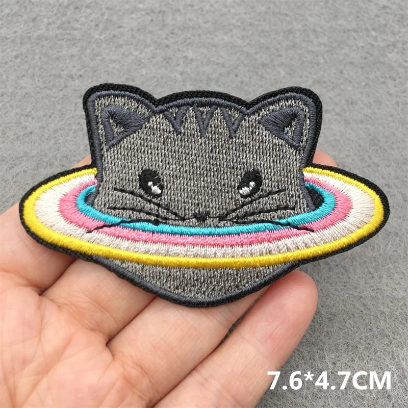 Parches bordados de animales divertidos para ropa, apliques de gato de dibujos animados, parches para planchar en la ropa, rayas