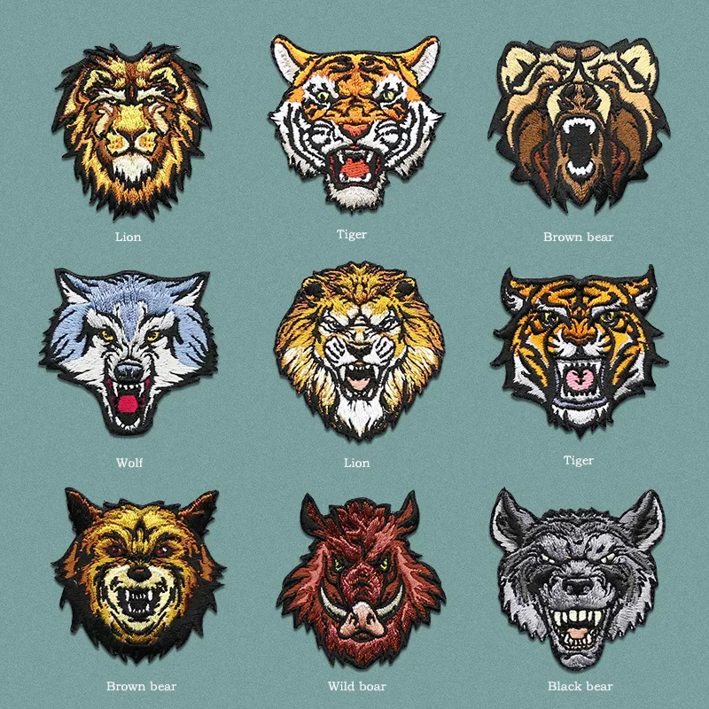 Parches bordados de animales de estilo Punk, transferencia de hierro, accesorios de costura con agujeros decorativos, ropa Hippie, Tigre, León, Lobo