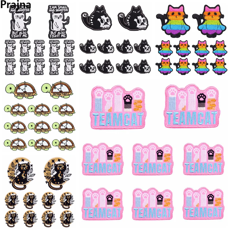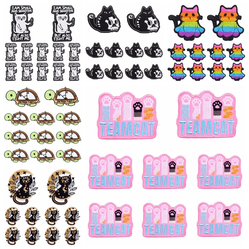 Parches bordados de animales/gatos para ropa, 10 piezas, apliques de costura para planchar en la ropa, Parche de dibujos animados para chaqueta, planchado DIY