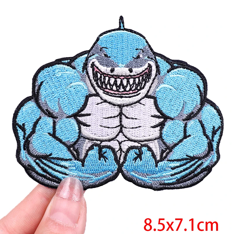Muscular Animals Embroidered Patches Cartoon Patch Iron On Patches For Clothing Thermoadhesive Patches On Clothes Decoration