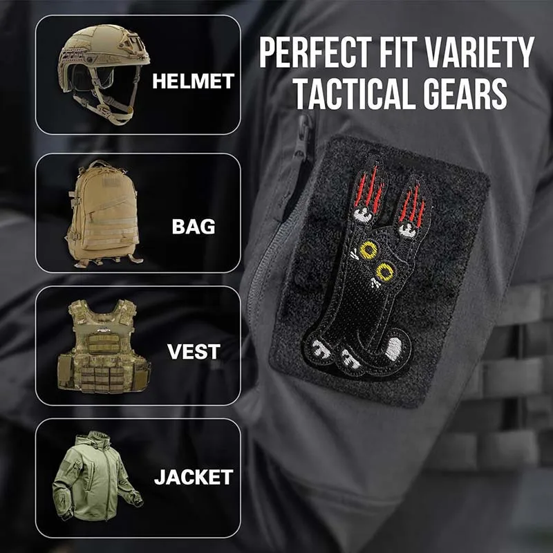 Parches bordados con apliques de tela de gatito trepador negro, pegatinas de moral con insignia táctica de gato lindo para brazalete, pecho, mochila