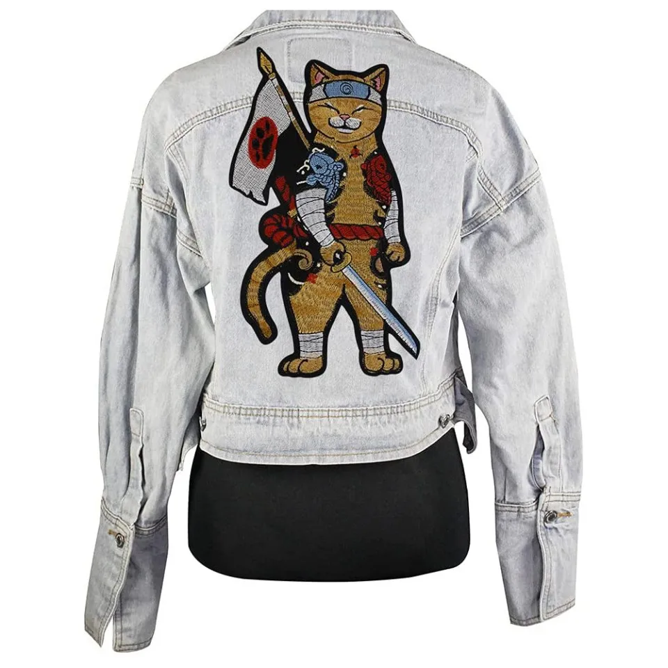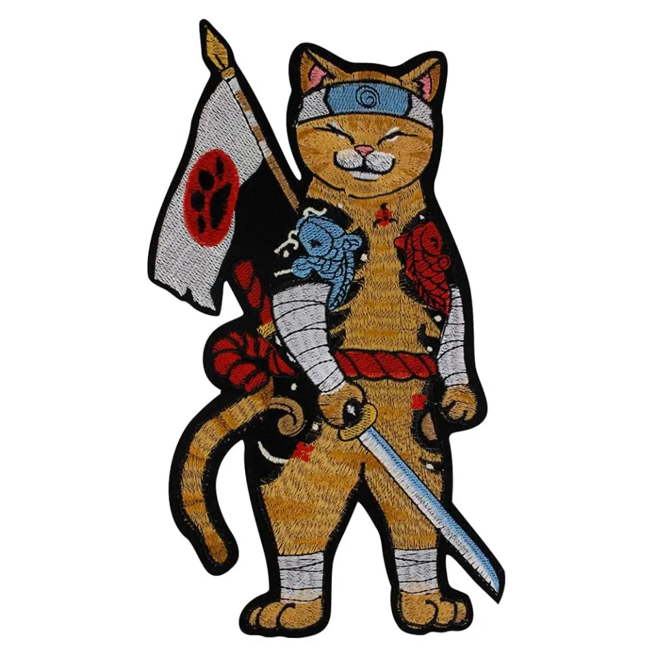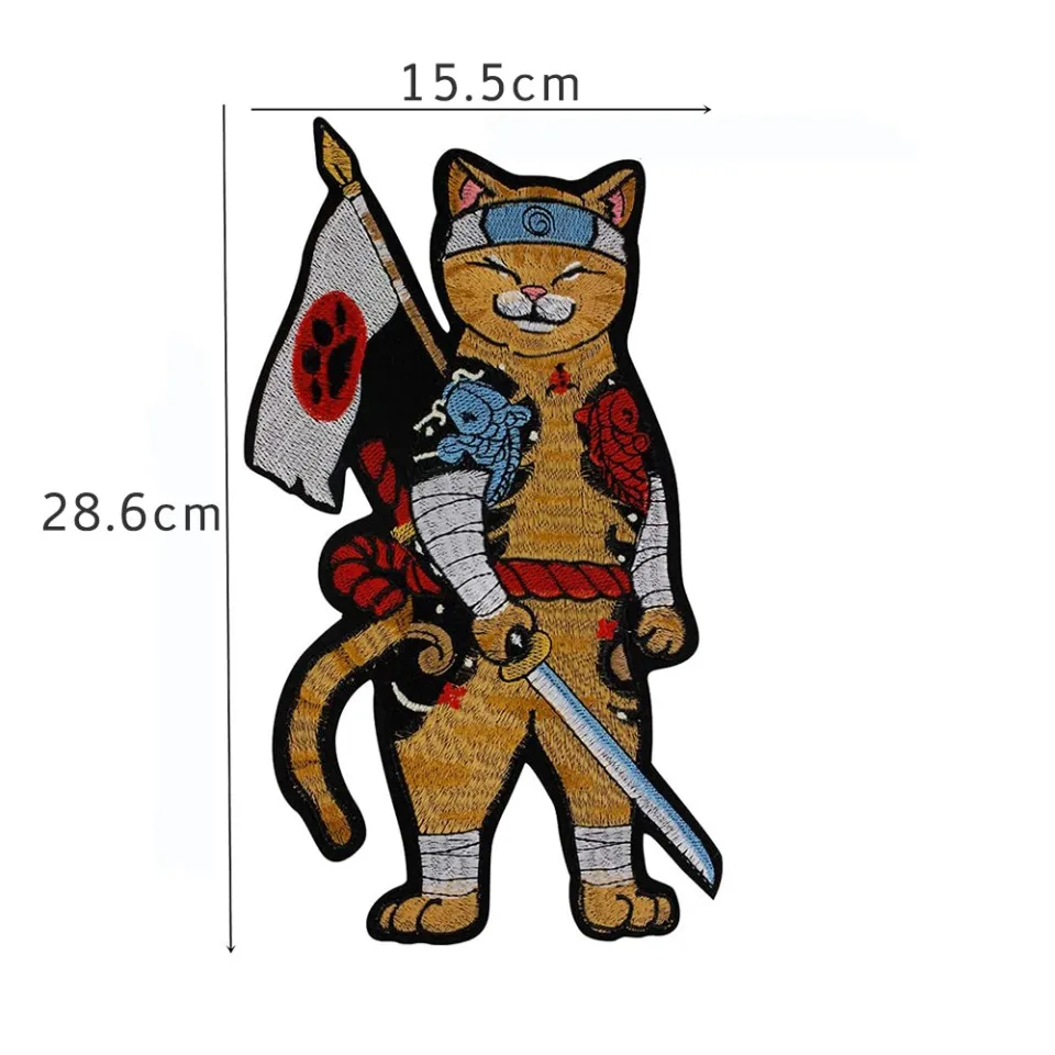 Samurai japonés atleta gatos gran tamaño bordado hierro en parches apliques parte posterior de chaquetas chalecos ropa accesorio coser DIY