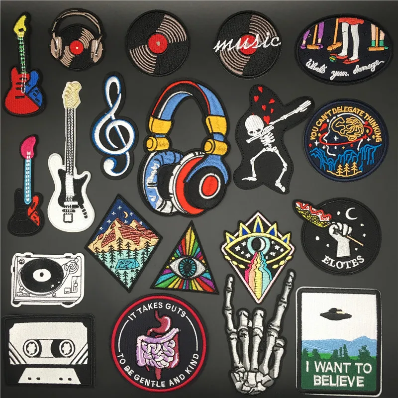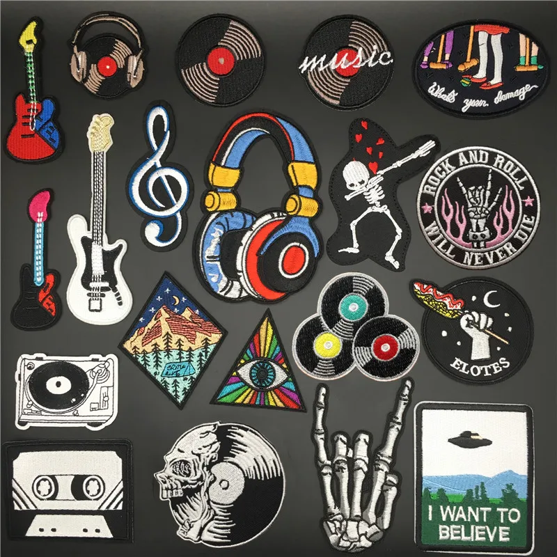 Parches bordados para auriculares de discoteca y música para ropa, apliques de rayas, insignia, decoración de costura, pegatina para ropa, parche para planchar DIY
