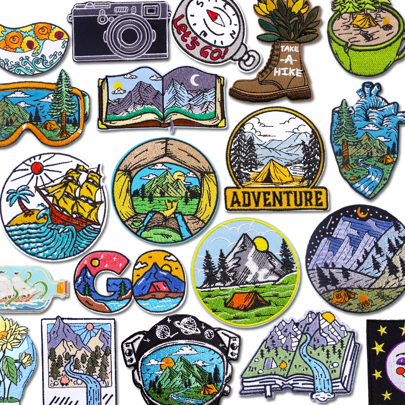 Parches bordados de aventura al aire libre para bricolaje, chaquetas, sombreros, insignias bordadas, parches termoadhesivos para ropa