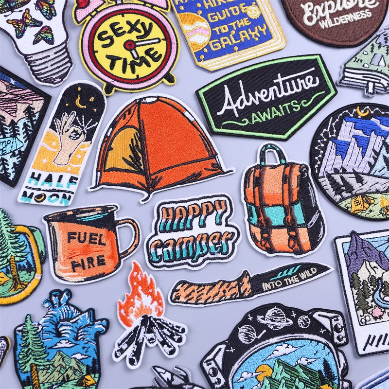 Parches de aventura bordados para Camper al aire libre en la ropa apliques fusibles térmicos para mochila montañismo parche de hierro