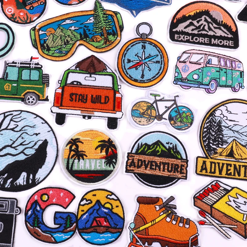 Parches bordados de aventura para ropa, parche para acampar en montaña/autobús Jeep, parches para planchar para ropa, mochila, sombreros, costura DIY