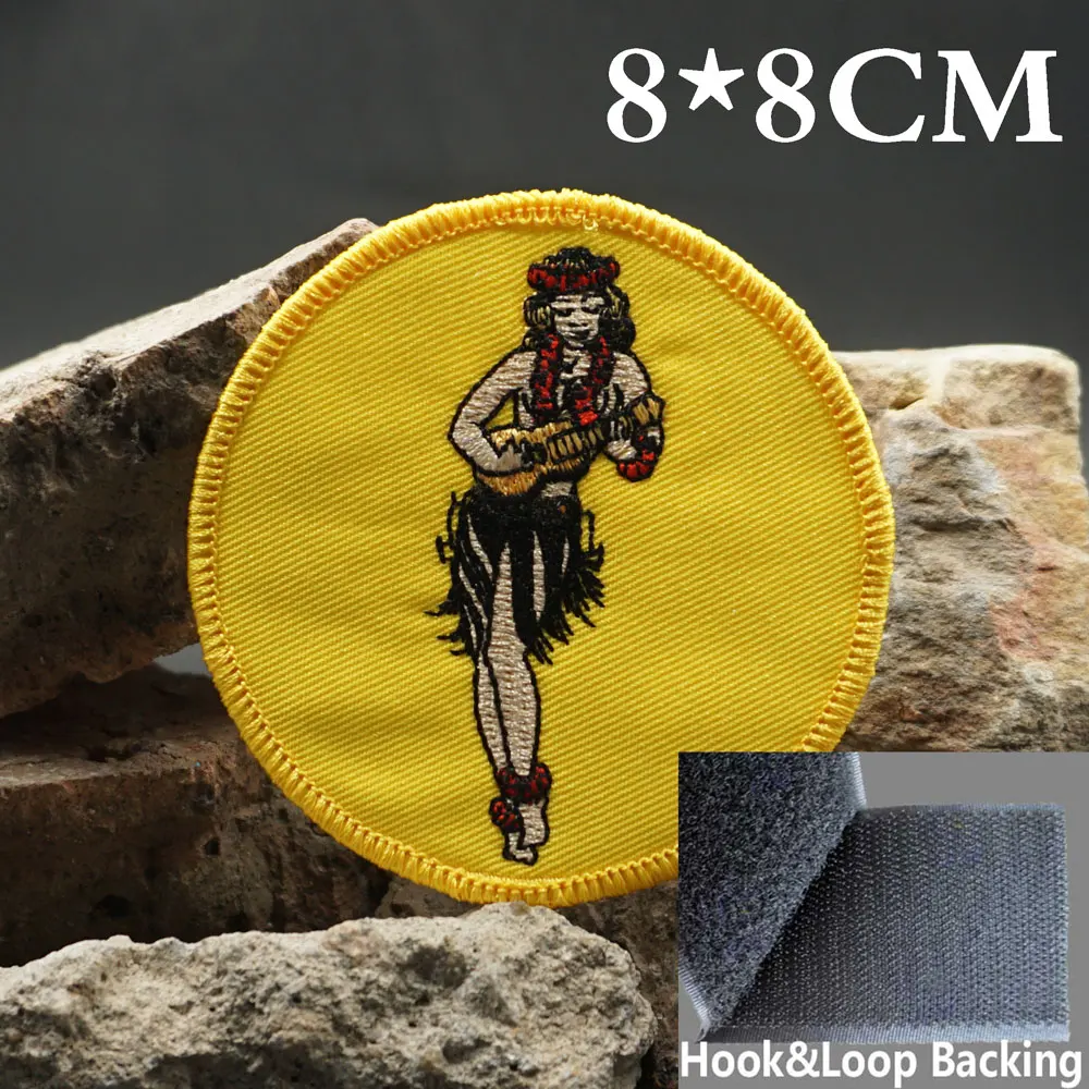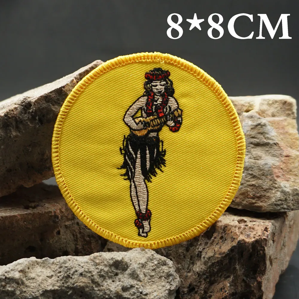 Parches bordados de baile Hula para niñas, apliques de etiqueta de costura, banda de motorista punk, insignia de ropa de Rock con respaldo de gancho o coser