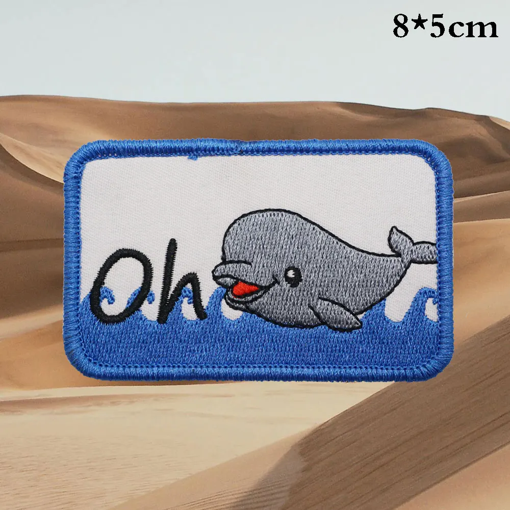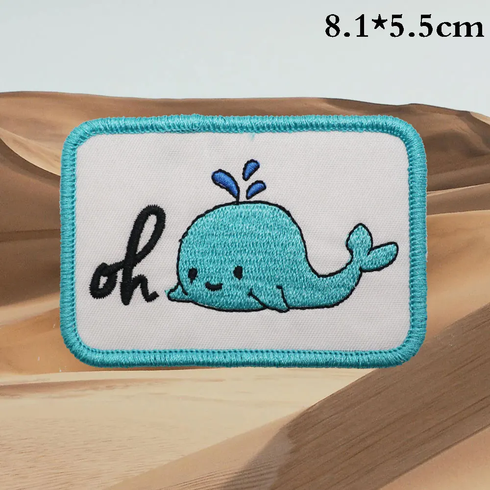 Parches bordados de ballena, aplique de etiqueta de costura, banda de motorista punk, insignia de ropa de Rock con respaldo de gancho o coser