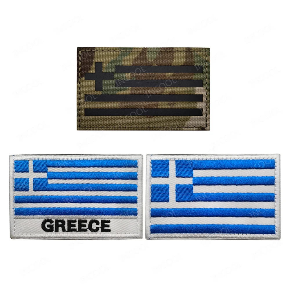 [Especificación]:Parches bordados Grecia Infrarrojo IR Reflectante Emblema griego Apliques Parche para ropa Gorra Bolsa Chaqueta