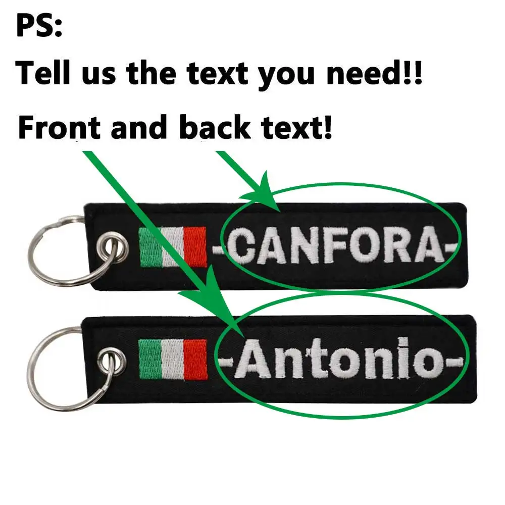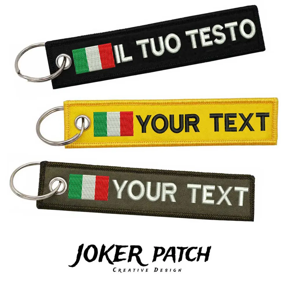 Parches bordados de bandera italiana personalizados, llavero, cualquier fuente, color, tamaño