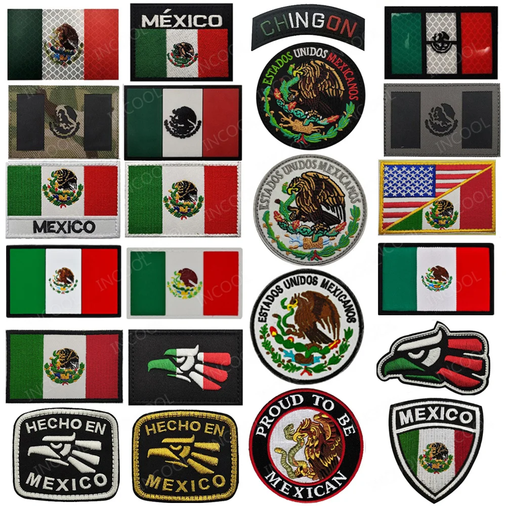 [Especificación]:Parches bordados con bandera de México, banderas mexicanas de águila nacional infrarroja reflectante IR, apliques, insignias tácticas de goma de PVC para brazalete
