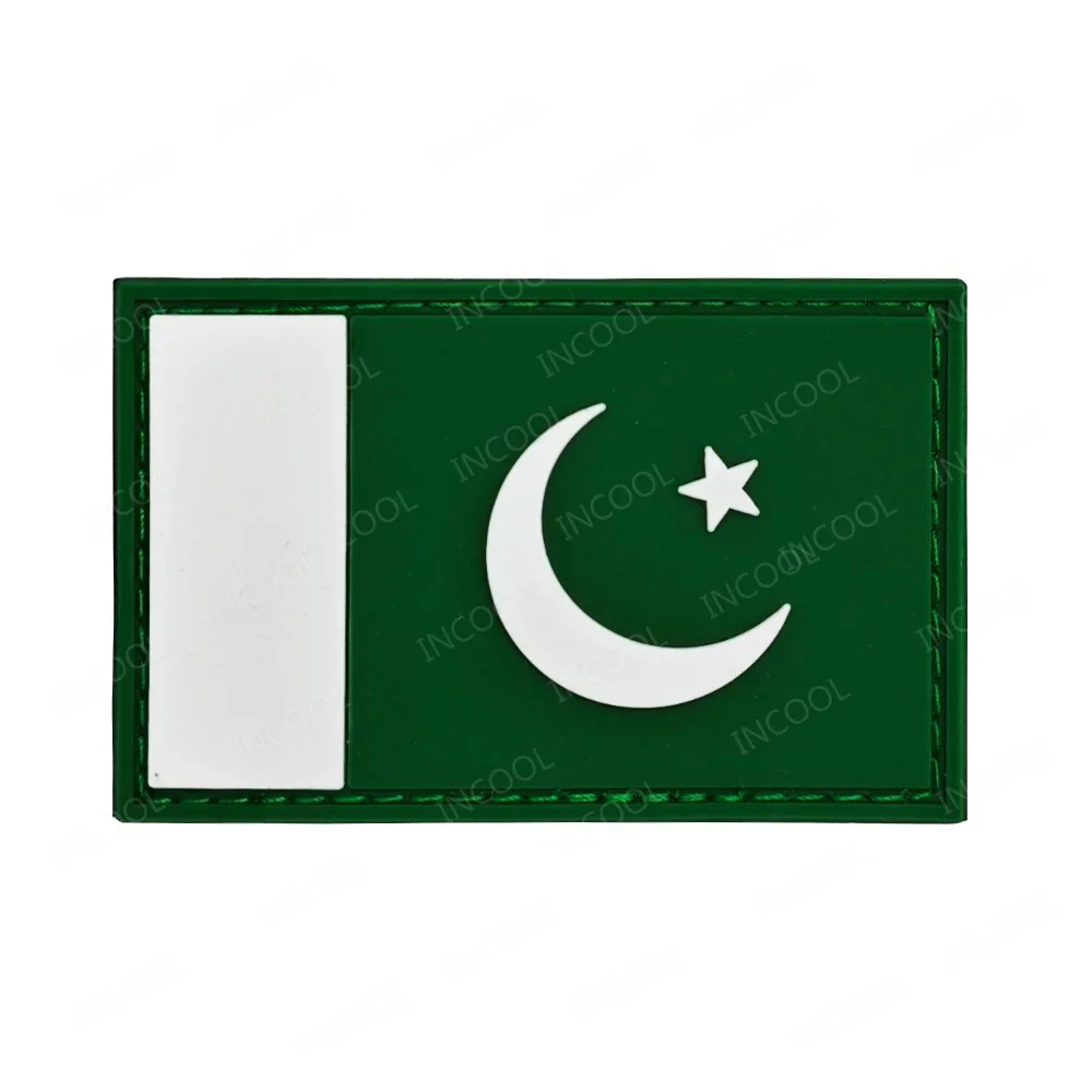 [Especificación]:Parches bordados de la bandera nacional de Pakistán, banderas de Pakistani de goma de PVC, apliques tácticos, brazalete, insignias decorativas para ropa