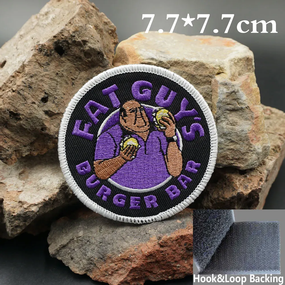 Parches bordados de barra de hamburguesa de Fat Guy, apliques, etiqueta de costura, banda de motociclista punk, insignia de ropa de Rock con respaldo de gancho o coser