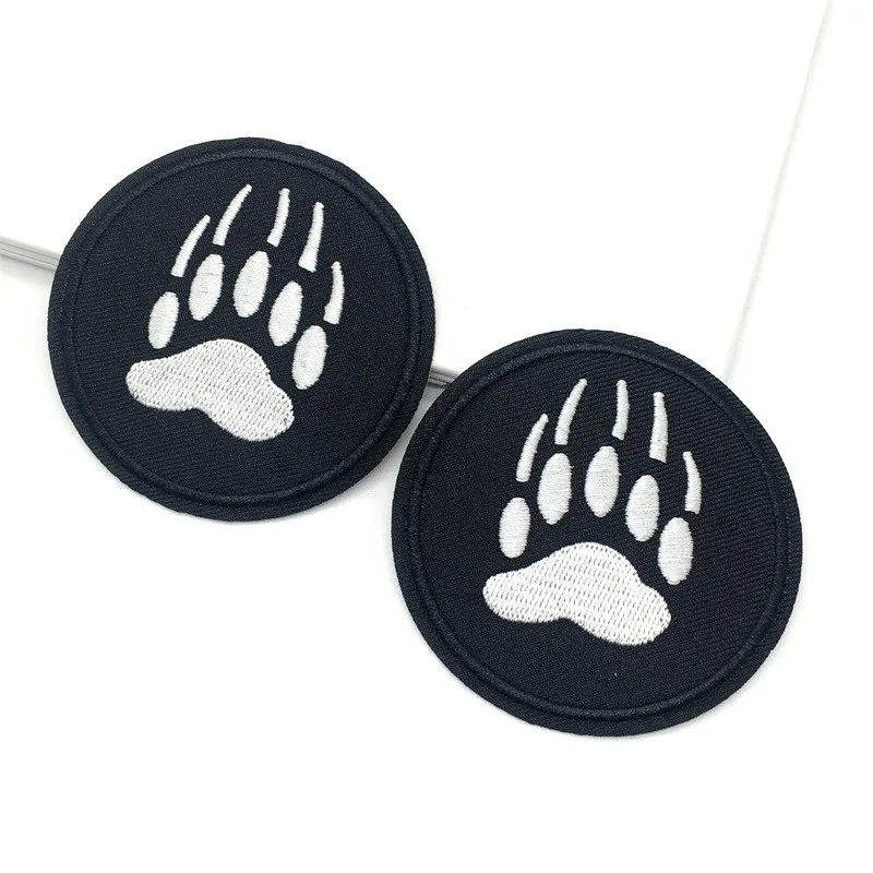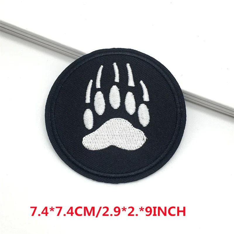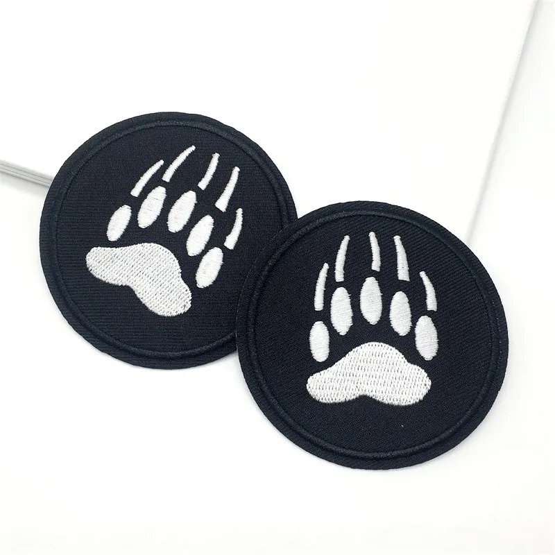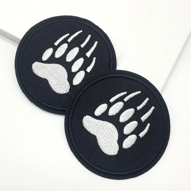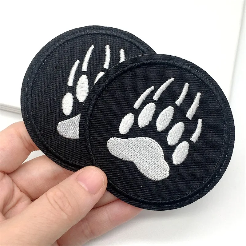 2 unids/lote de parches bordados en blanco y negro, ropa DIY, sombrero, gancho y bucle, pegatina decorativa, Parche de pata de perro de dibujos animados