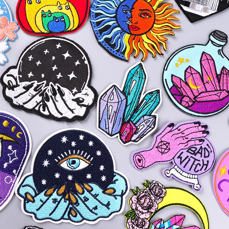 Parches de bola mágica, parches bordados para ropa, parches termoadhesivos, parches de hierro a rayas, insignias de cristal, mochila DIY