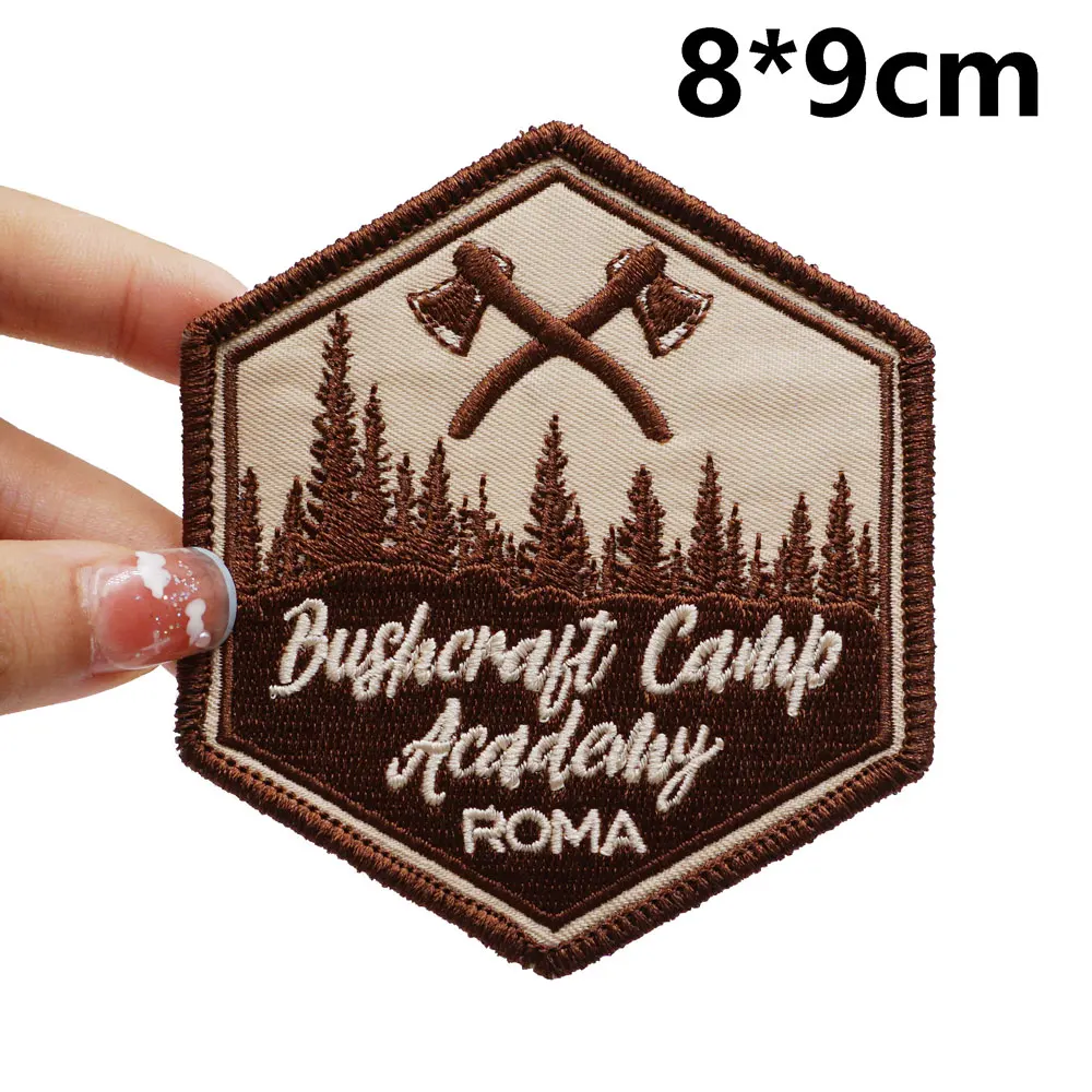 Parches bordados BUGHCRAFT CAMP ACADEMY ROME, apliques, etiqueta de costura, banda de motociclista punk, insignias para ropa de Rock con respaldo de gancho
