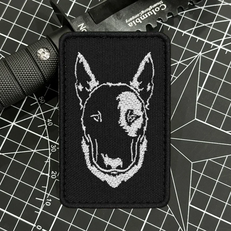 "Bull Terrier" Embroidery Patches Cute Dog Hook and Loop Patch on Clothes Military Morale Badge Armband Tactical Backpack Stickers