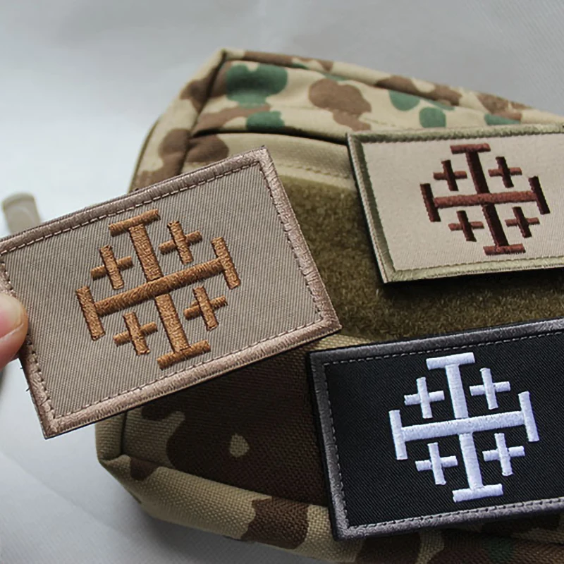 Parches bordados de Caballeros de Jerusalén, insignias de moral cruzada, parches bordados con emblema de gancho y bucle táctico militar para ropa, chaquetas Tamaño:8cm * 5cm,10cm * 3cm, 9,5 cm * 2,6 cm Características: Personaliza accesorios de ropa. Se puede pegar en ropa, mochilas, sombreros, chaquetas, faldas, camisetas y otros artículos para personalización DIY. Nota: