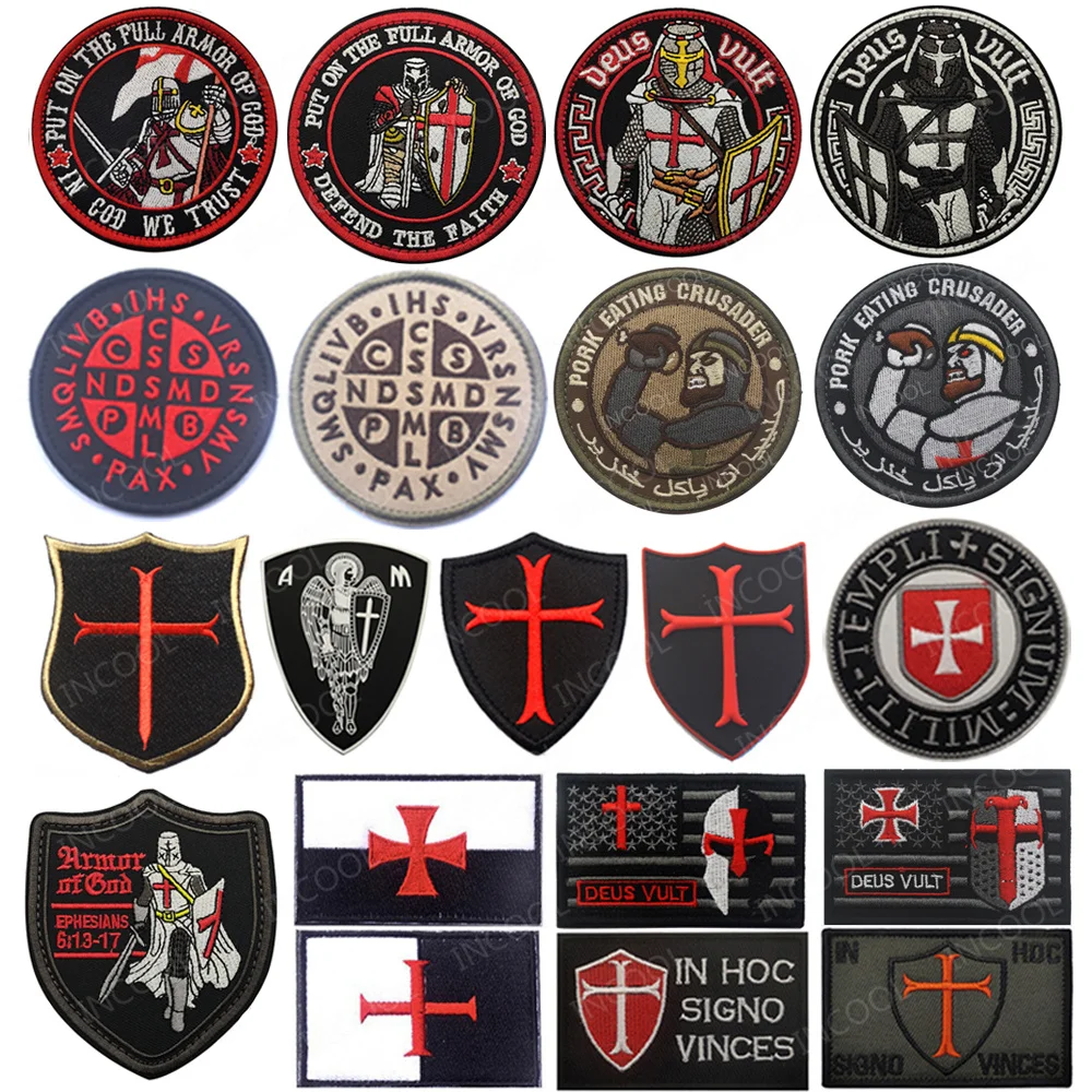 [Especificación]:Parches bordados de caballeros Templar, brazalete táctico en Dios, confiamos en soldados, insignias decorativas bordadas para chaquetas y ropa