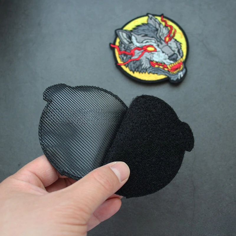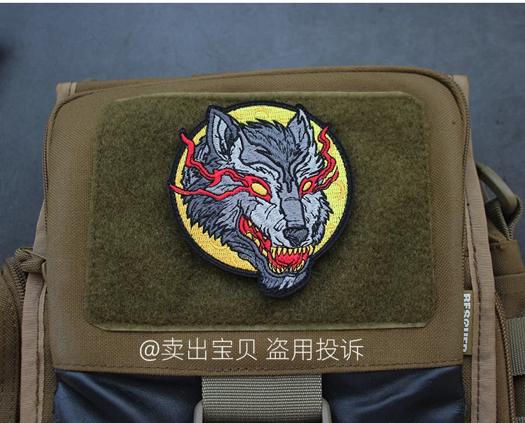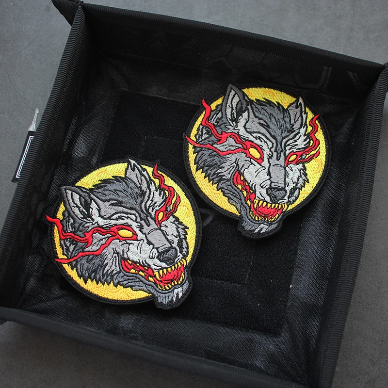 Parches de gancho y bucle con bordado de cabeza de Lobo, insignia de moral táctica, pegatina de mochila "Swallowing Moon and Sirius" para ropa