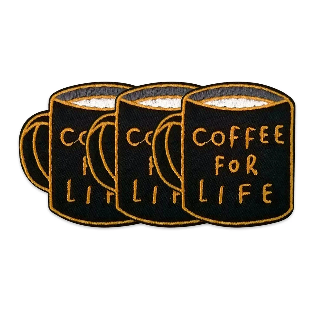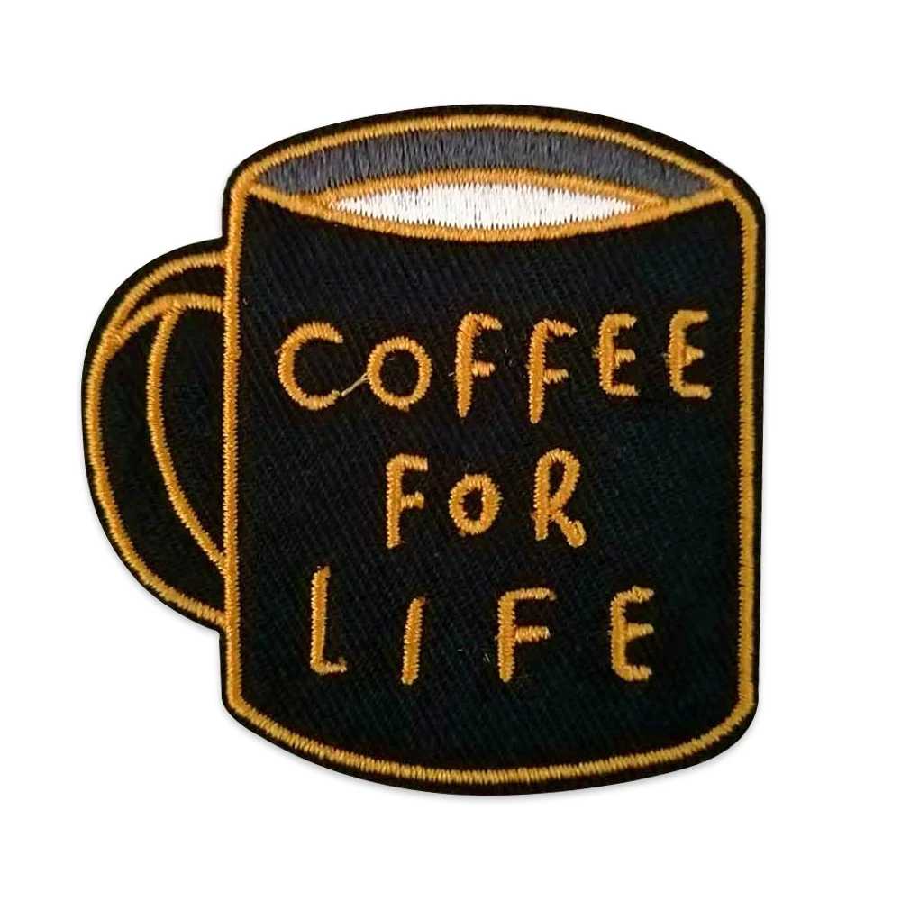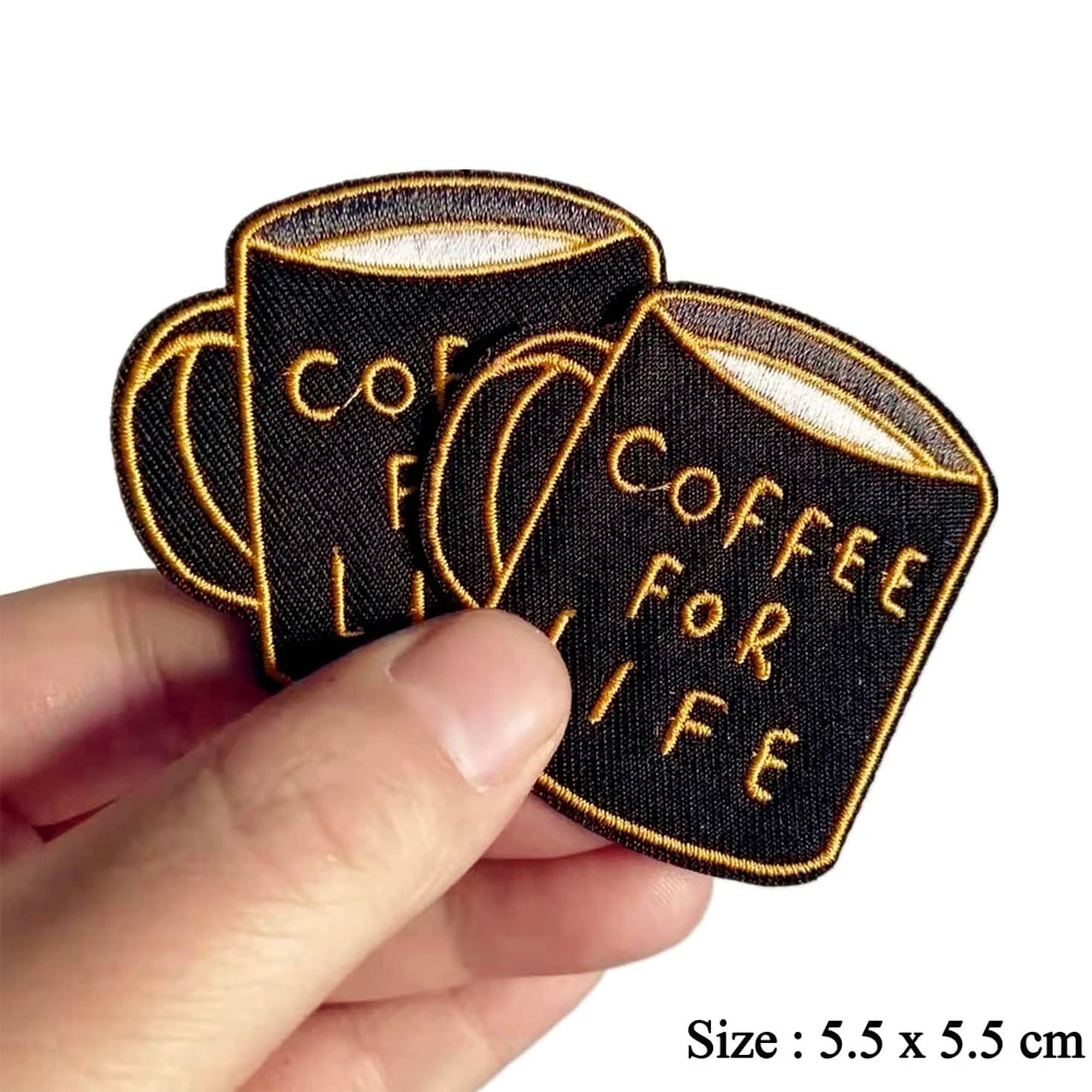 Coffee for Life Embroidery Patches Iron on Embroidered Badge Working Hard Applique Accessories for Garment Handbag Coat Dress