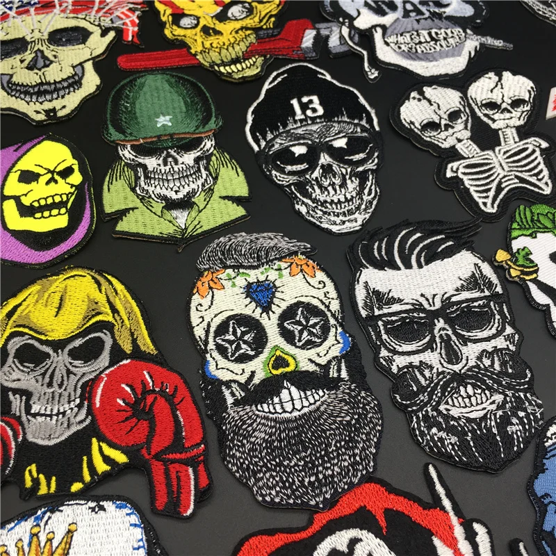 Parches Punk de calavera para ropa, parches bordados para planchar, apliques para ropa, chaqueta, vaqueros, rayas de costura, insignias Diy