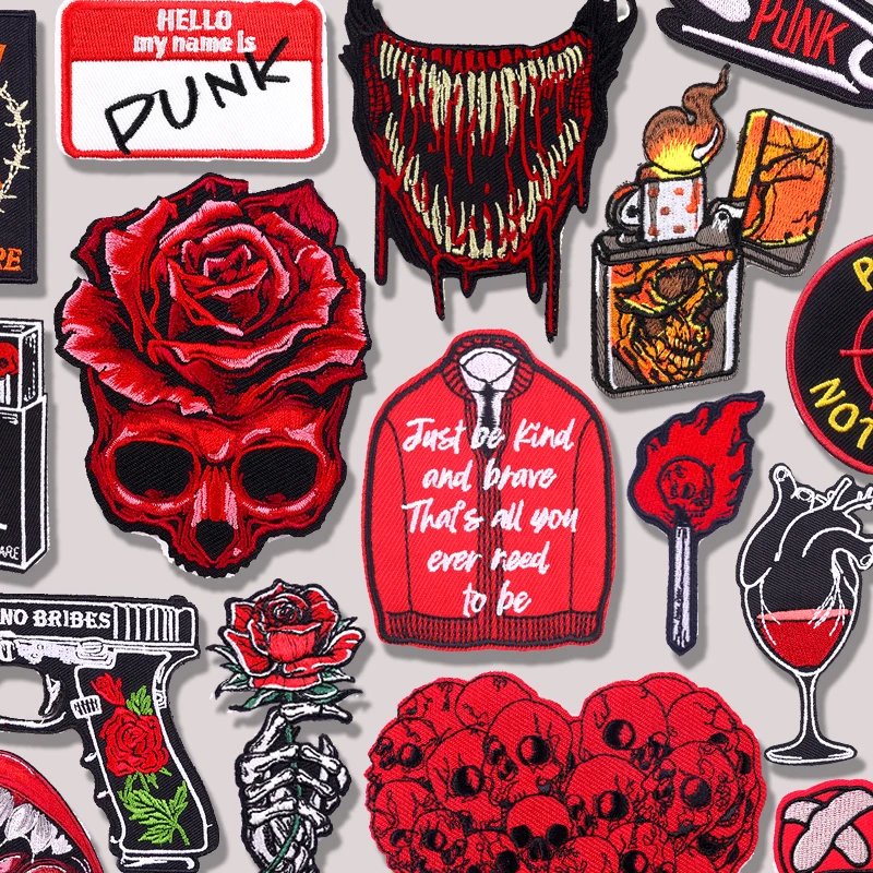 Parches bordados de calavera rosa/palo, vaqueros, sombreros, mochila, parche bordado, parches termoadhesivos para ropa, DIY