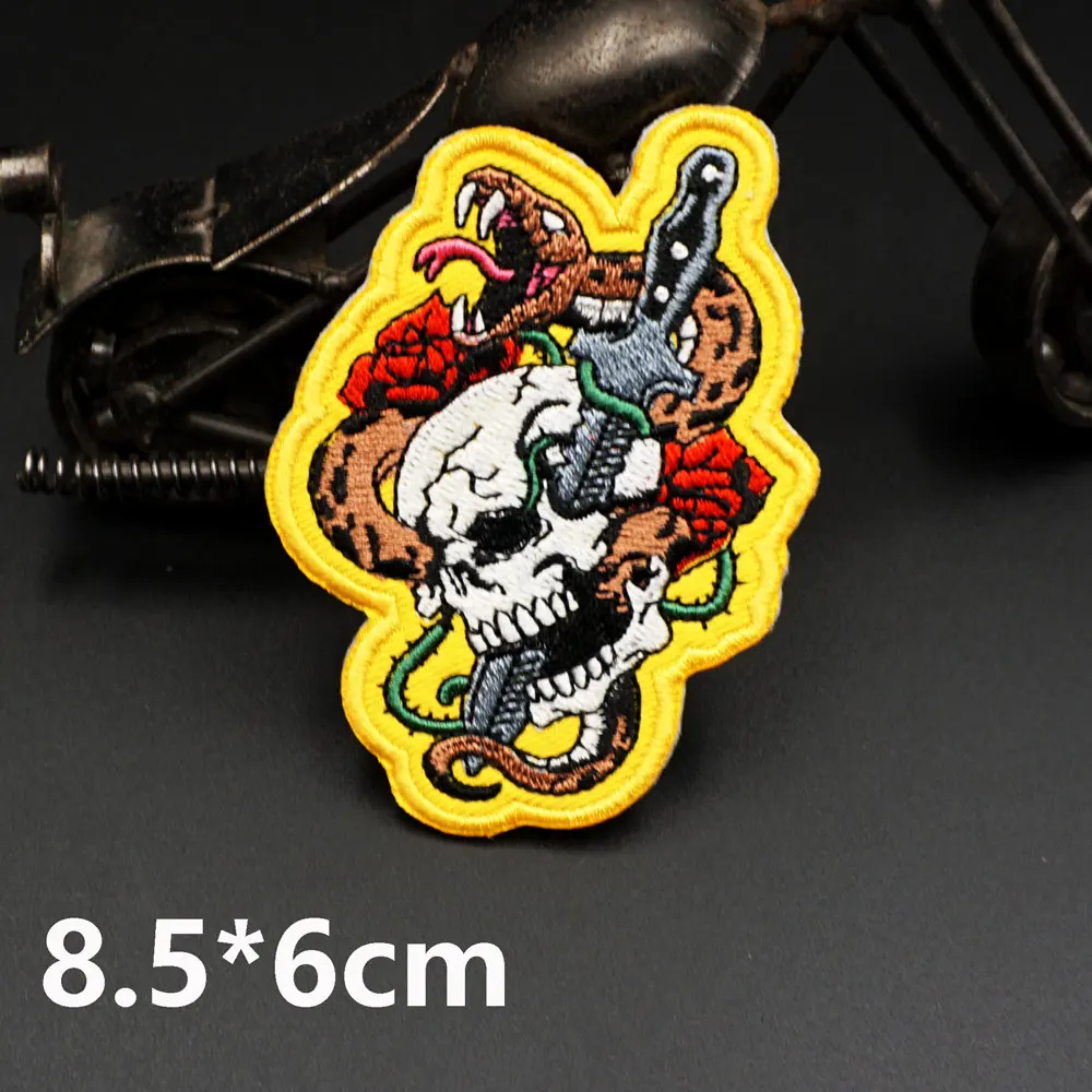 Parches bordados de calavera y serpiente con gancho para coser, respaldo para ropa, mochila, gorras, apliques DIY