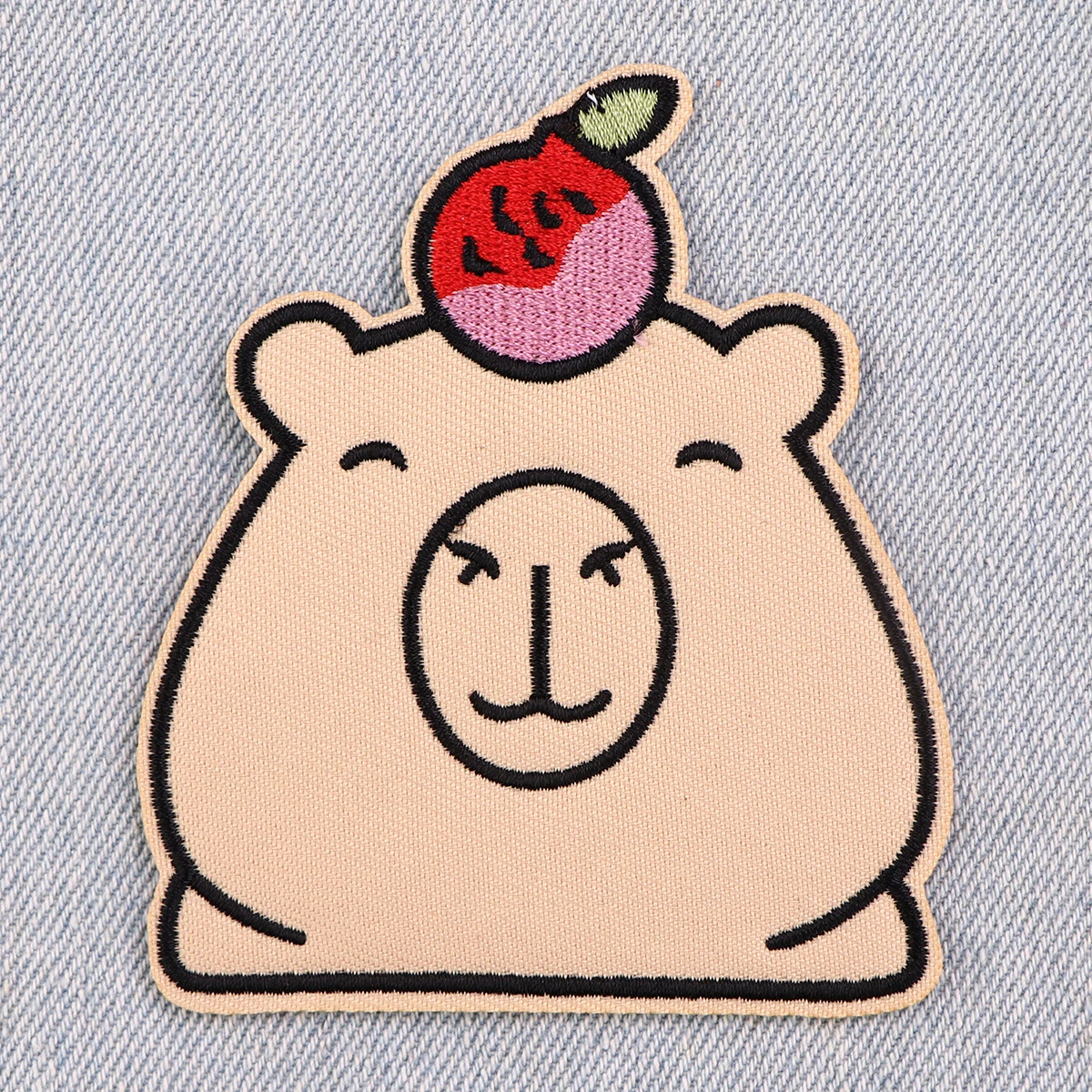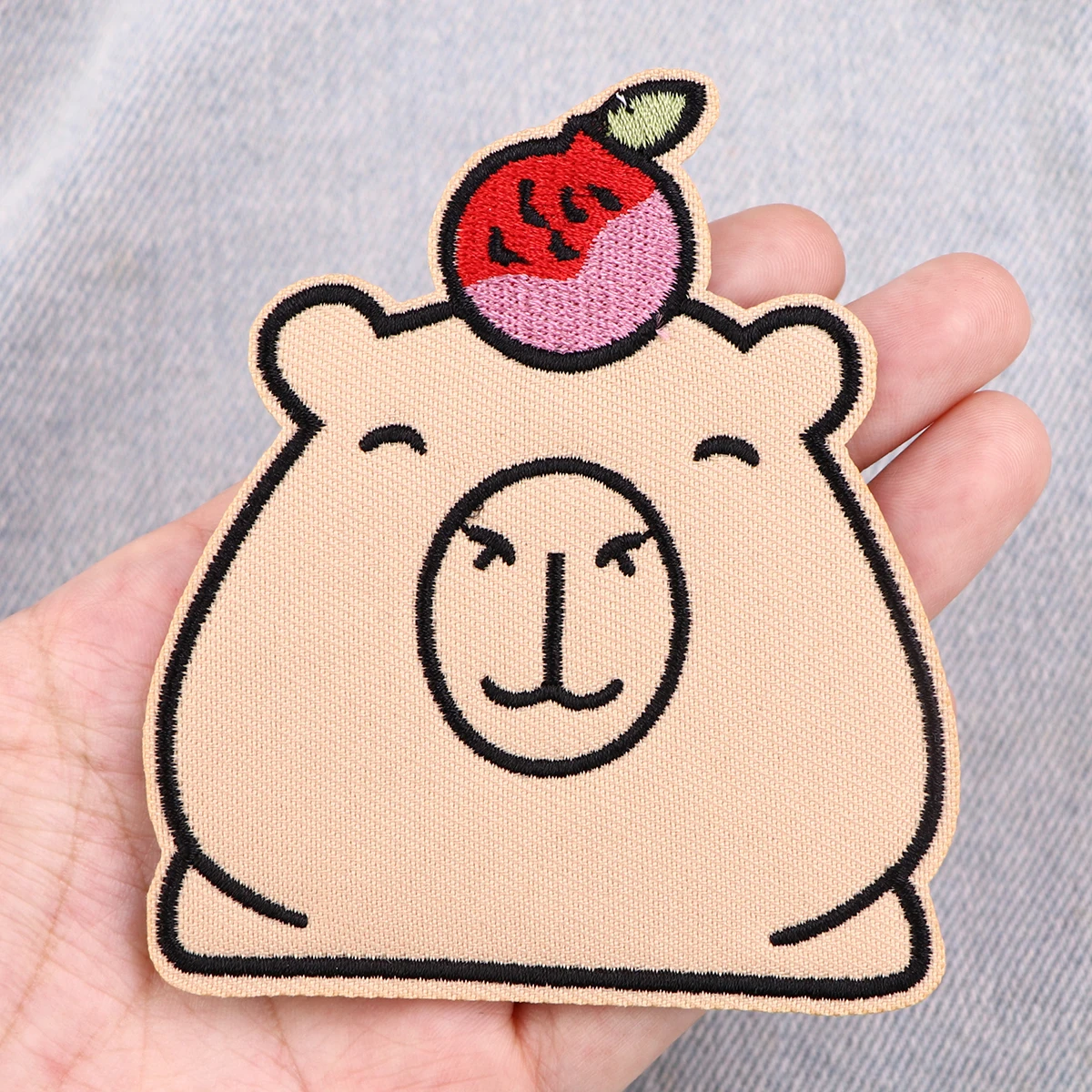 Parches bordados de capibara bonitos para ropa, parches para ropa, animales de dibujos animados, DIY, parche para planchar en pegatinas para ropa