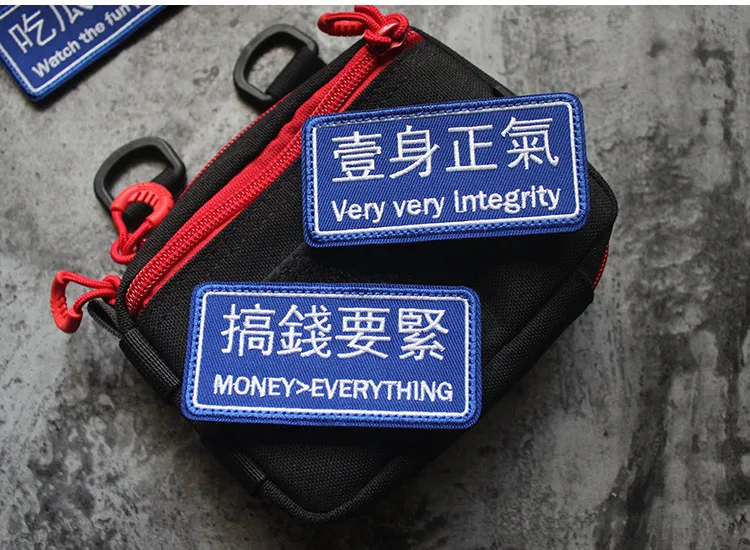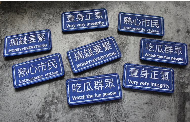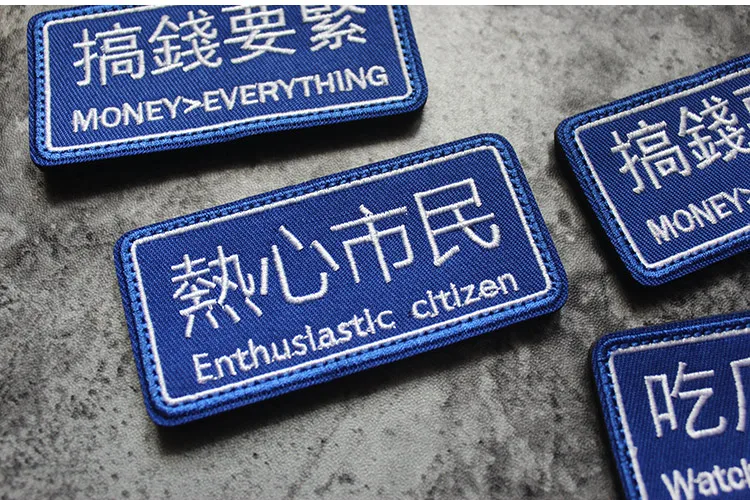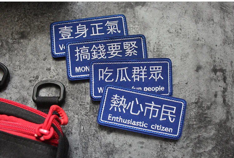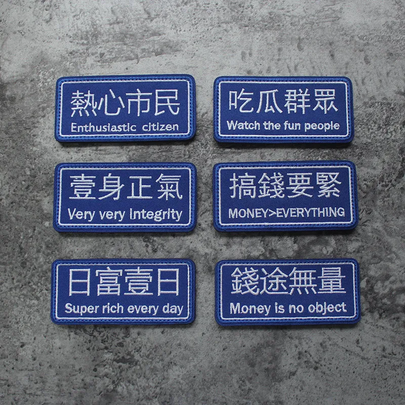 Parches bordados de caracteres chinos tradicionales, insignias tácticas diarias súper ricas del Citizen entusiasta divertido cantonés