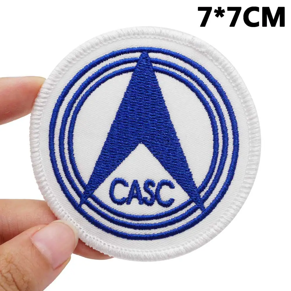 Parches bordados de CASC aeroespacial de China, apliques de etiqueta de costura, banda de motorista punk, insignias de ropa de Rock con respaldo de gancho