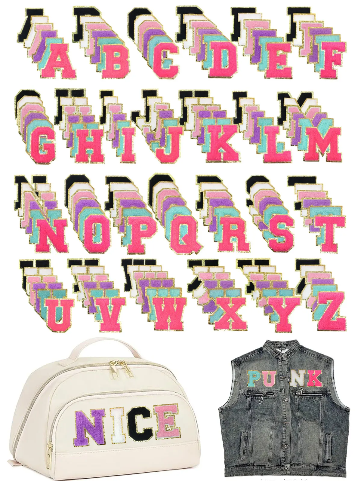 Parches bordados de chenilla con letras de varios colores, calcomanías en ropa, vestidos, sombreros, pantalones vaqueros, accesorios de bricolaje con tu nombre