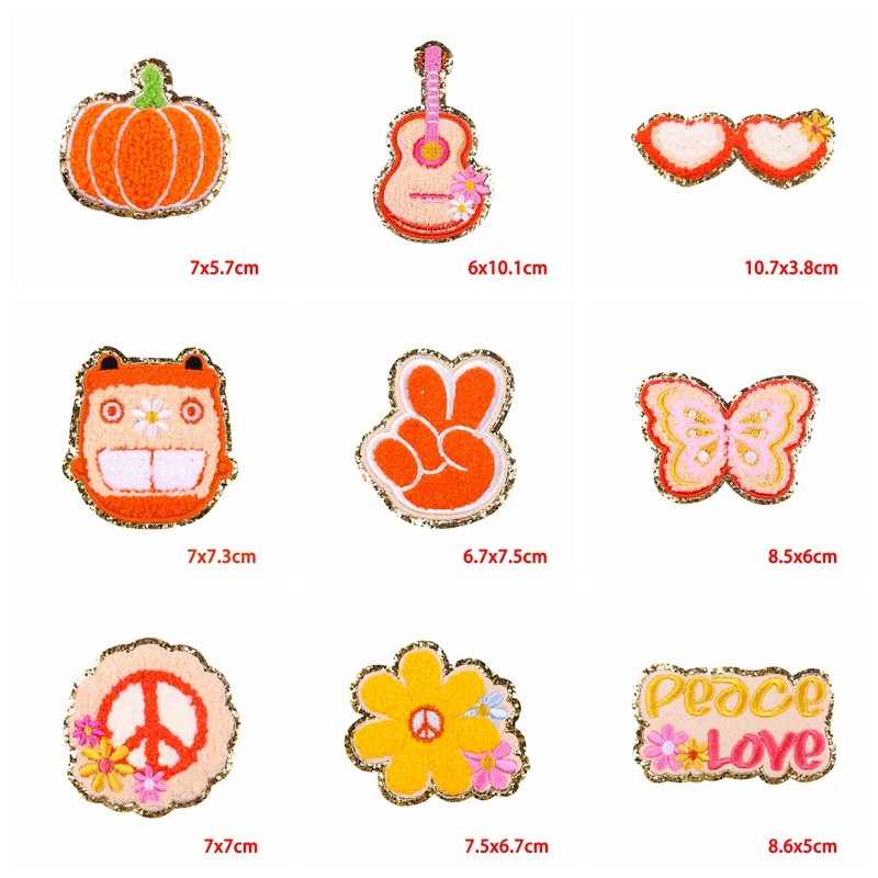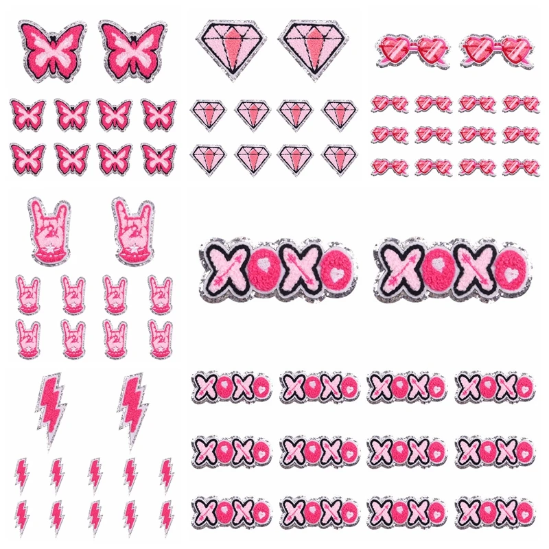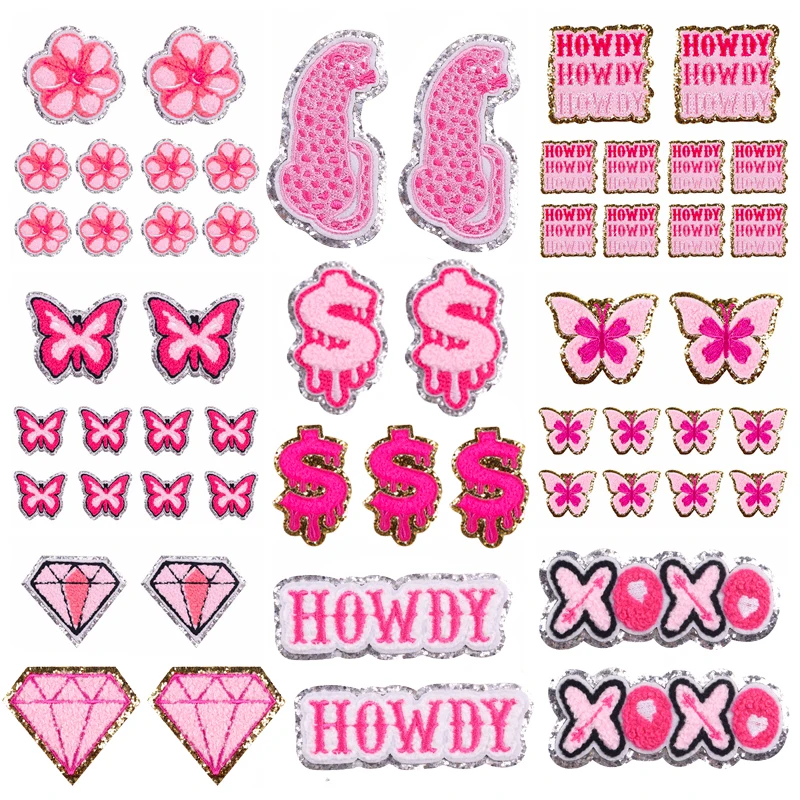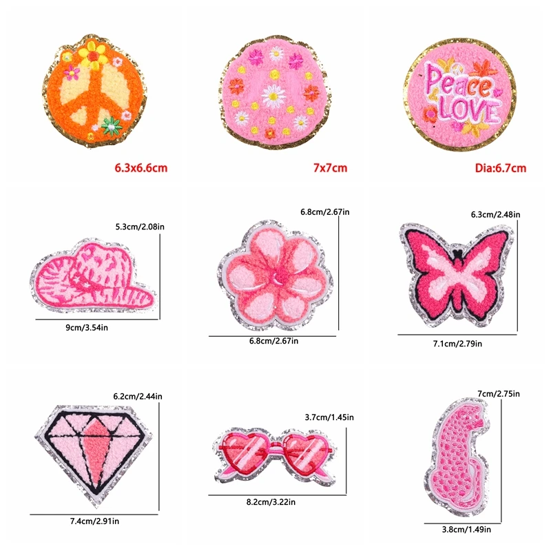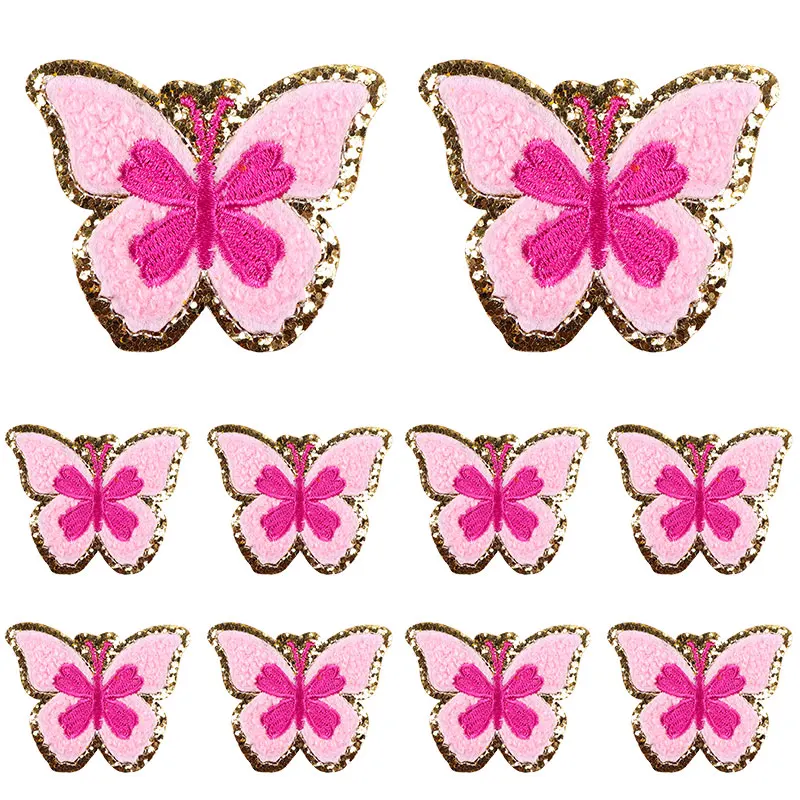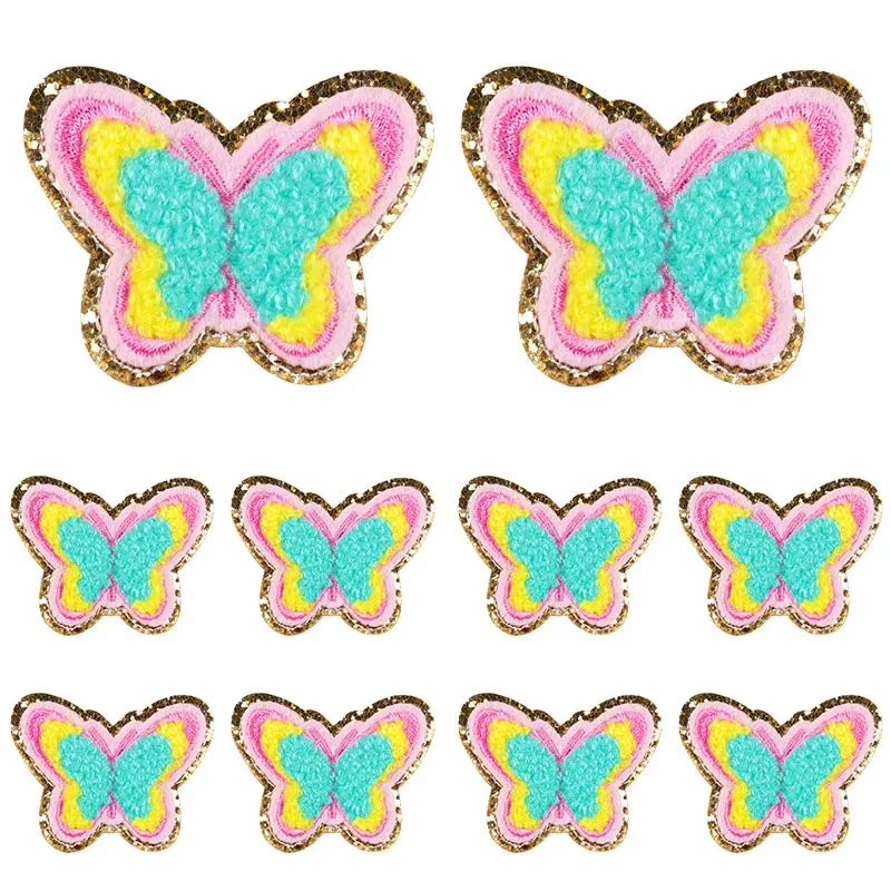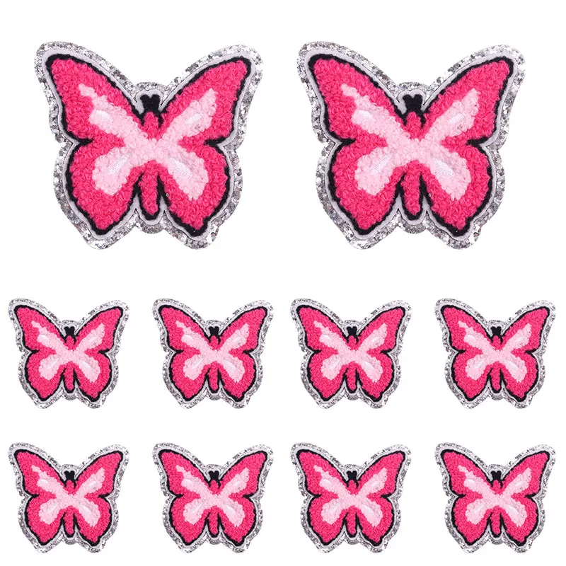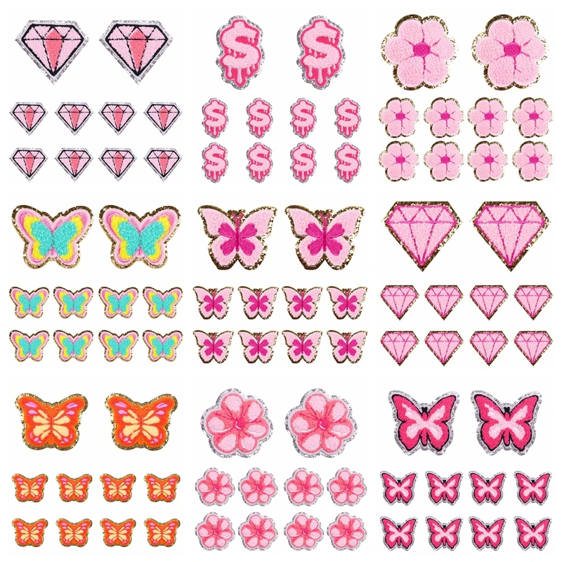 Parche de dibujos animados para ropa, toalla bordada de chenilla, flor, mariposa, diamante, parches para planchar, sombreros, mochila, bricolaje