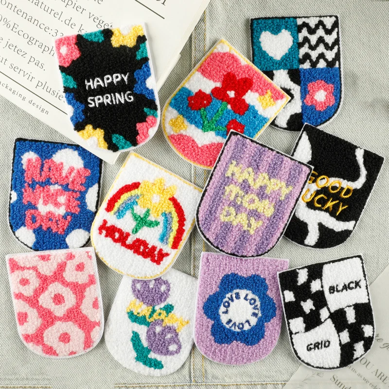 Parche bordado de flores en inglés para Toalla de chenilla, parche bordado de bolsillo, parches bordados para planchar, parches para ropa DIY, 10