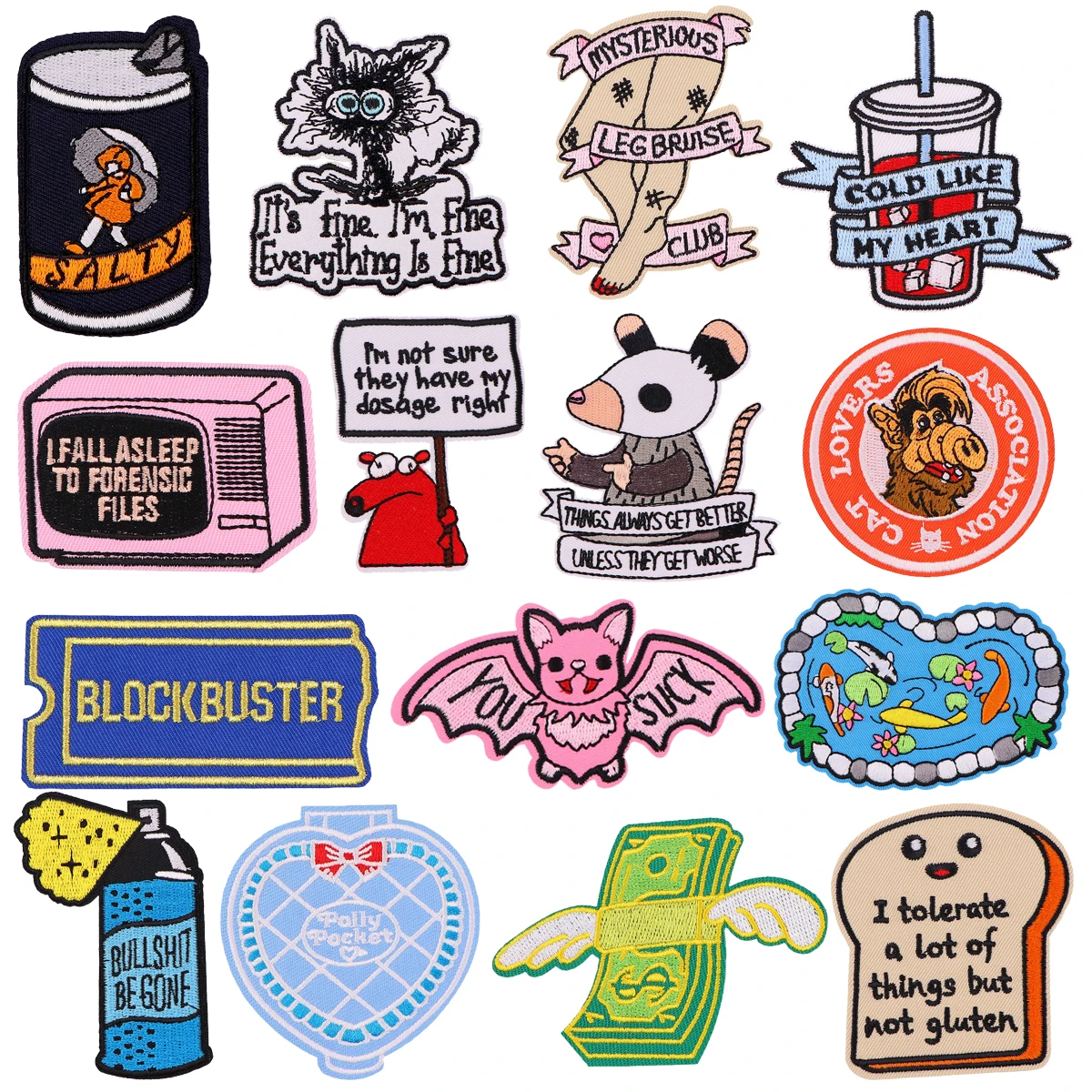 Parches bordados con citas divertidas para ropa, parches Koi para ropa, pegatinas para planchar, parches, rayas de animales, apliques Diy