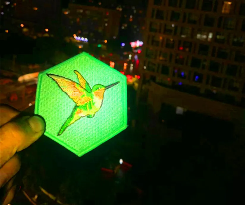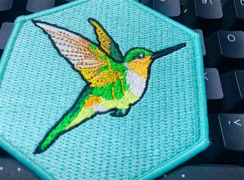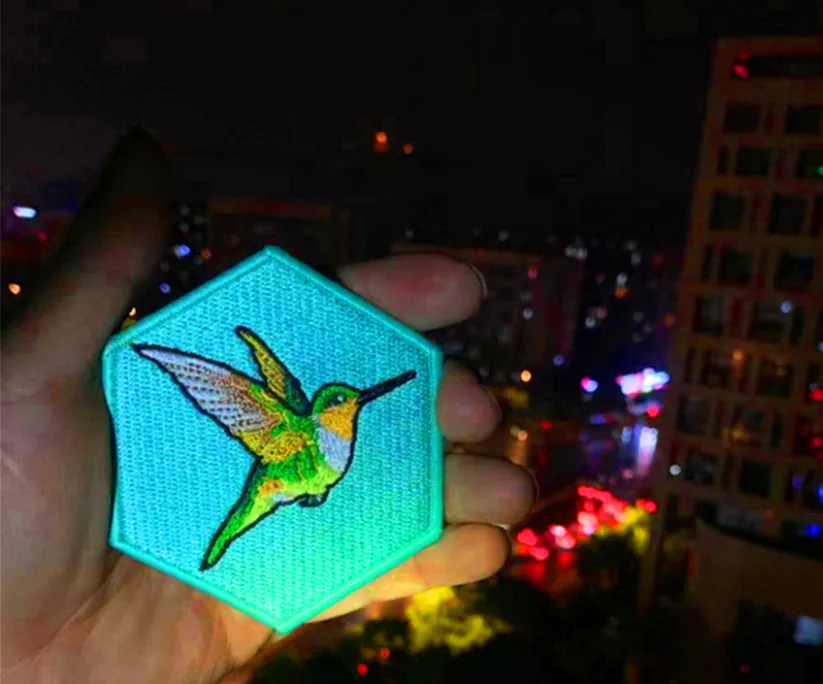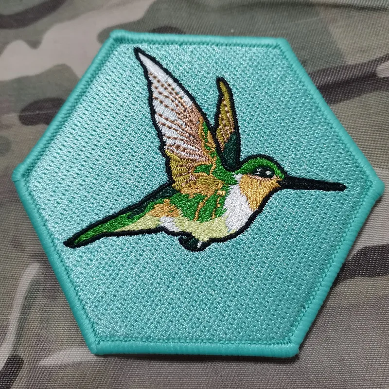 Parches bordados de colibrí, pegatinas hexagonales de pájaros, color azul cielo, insignias tácticas para ropa, mochila, chaleco, brazalete con apliques