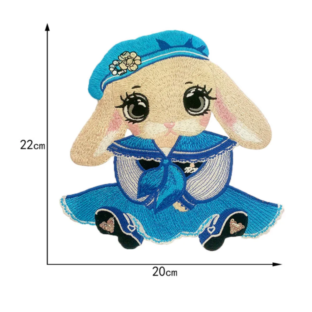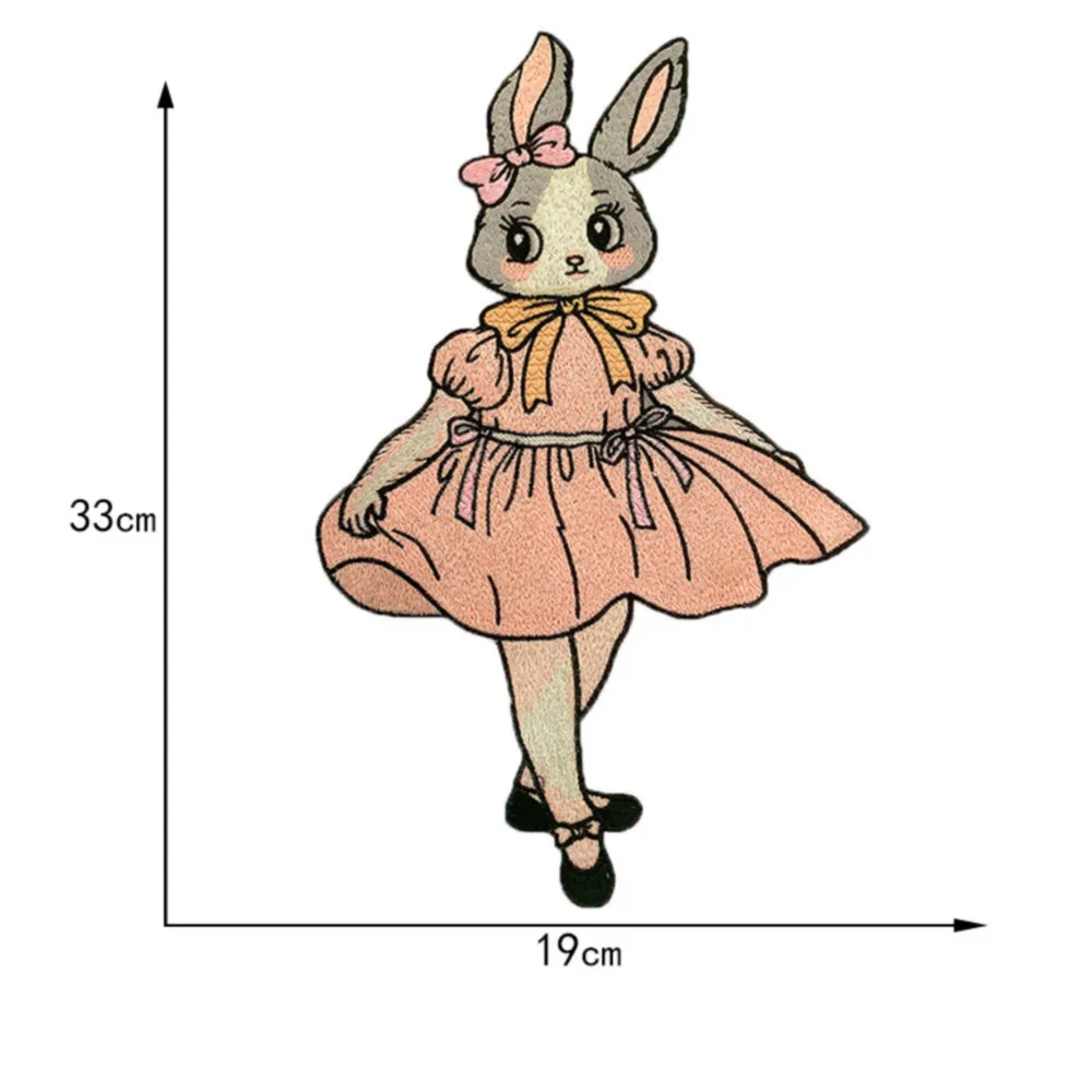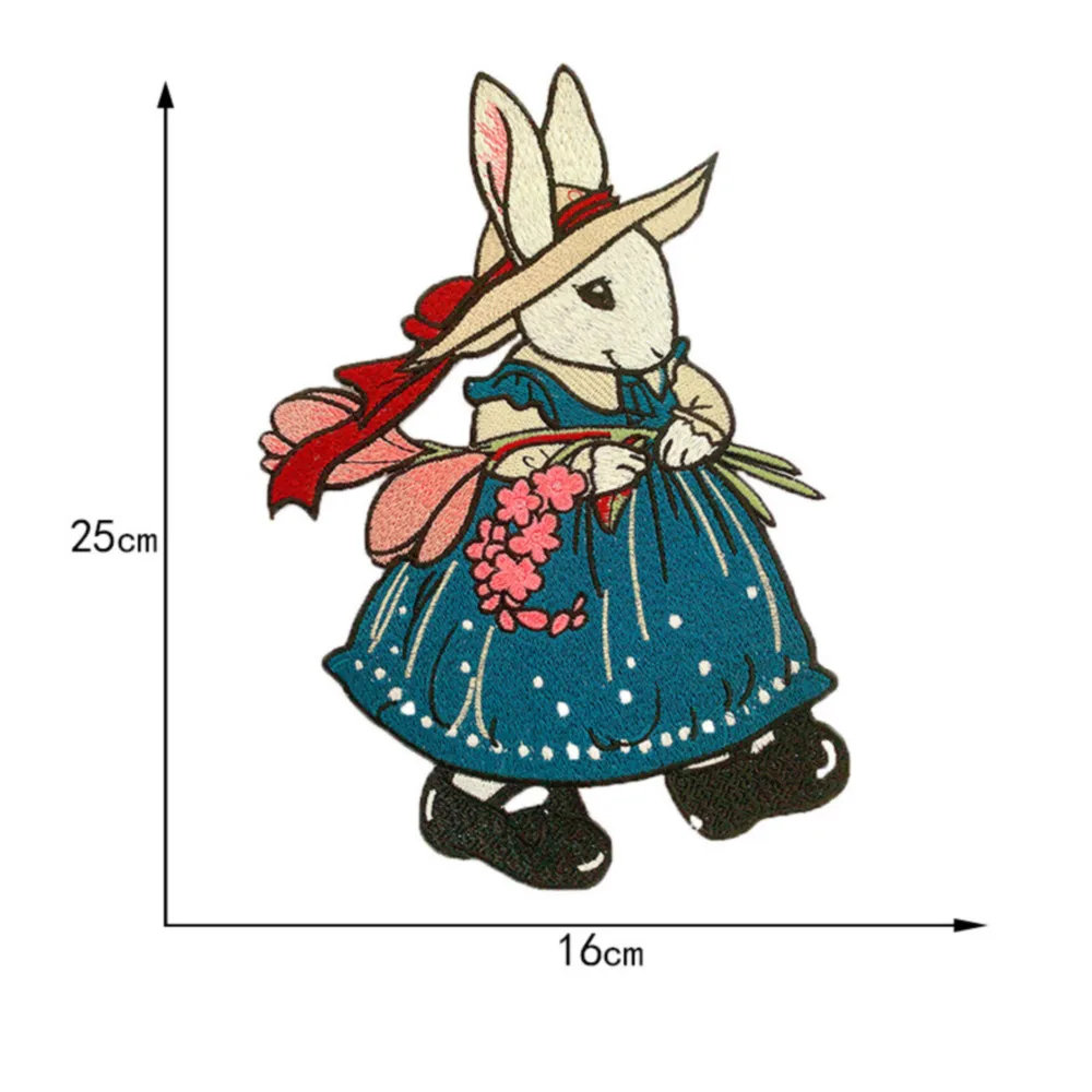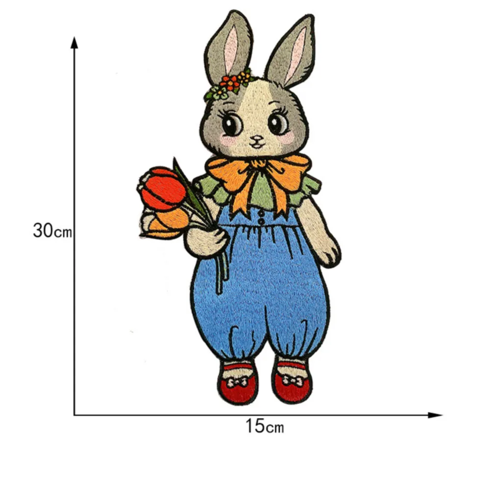 Parches bordados de conejo de dibujos animados grandes, apliques de ropa para coser, pegatinas decorativas de animales lindos en chaquetas, parche cosido en camiseta