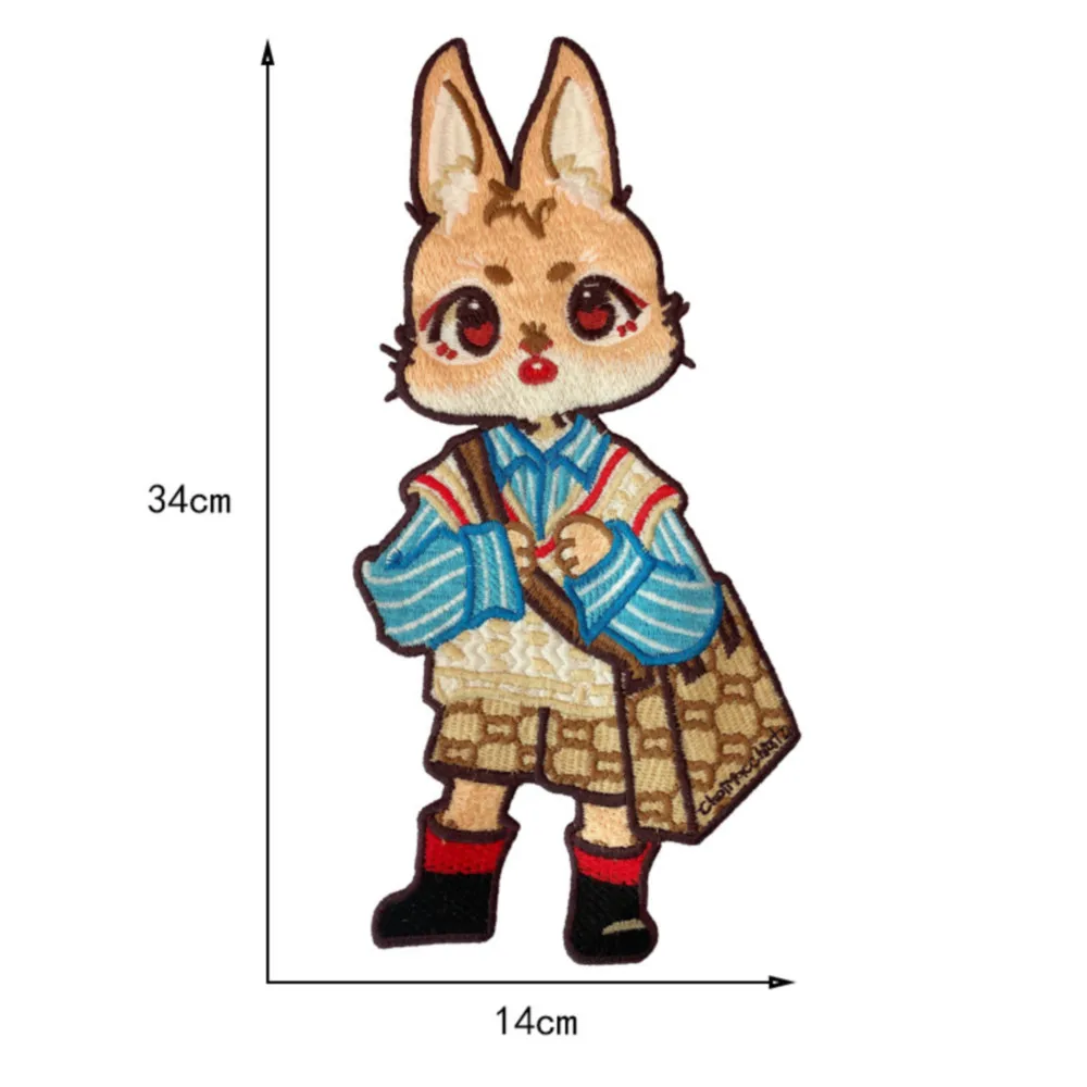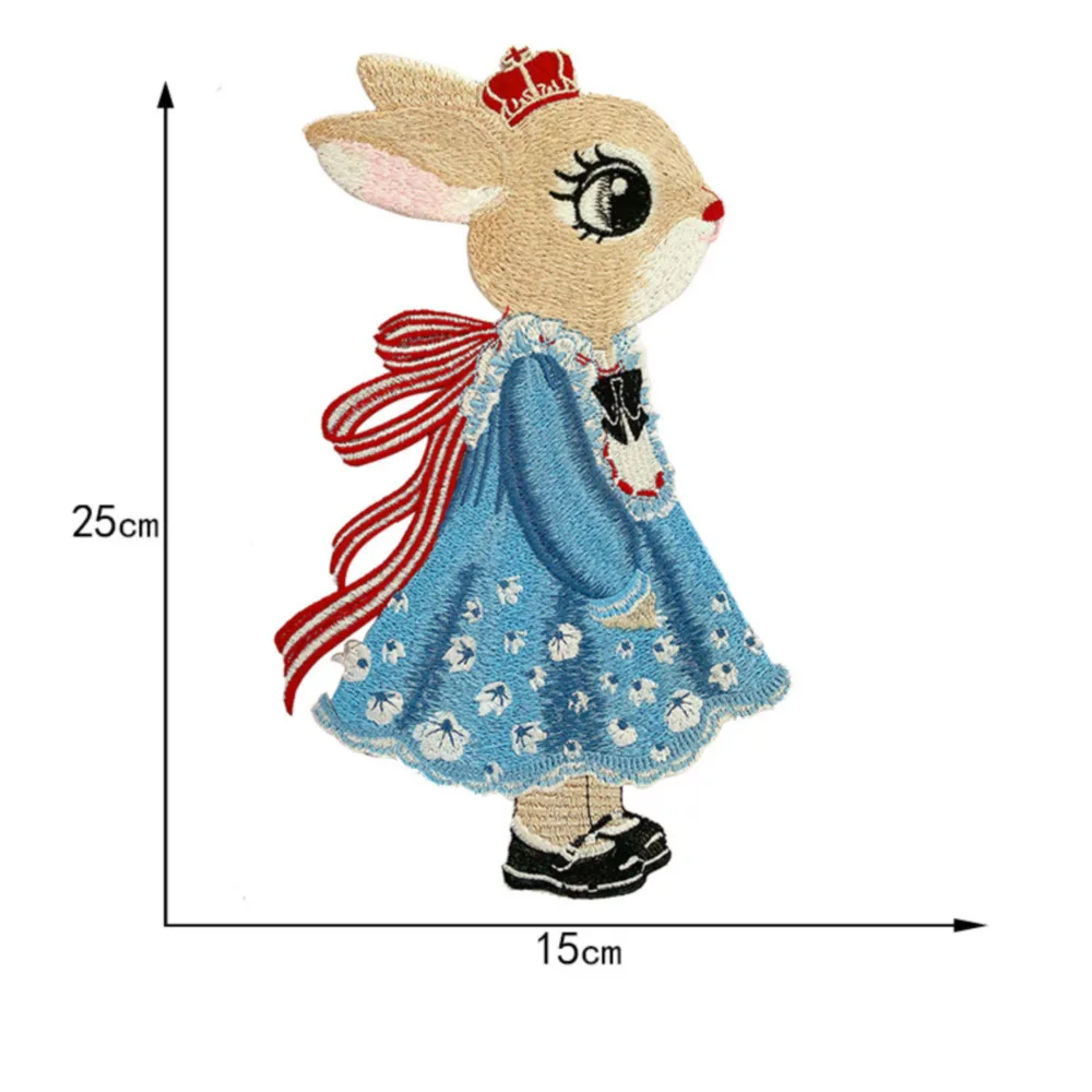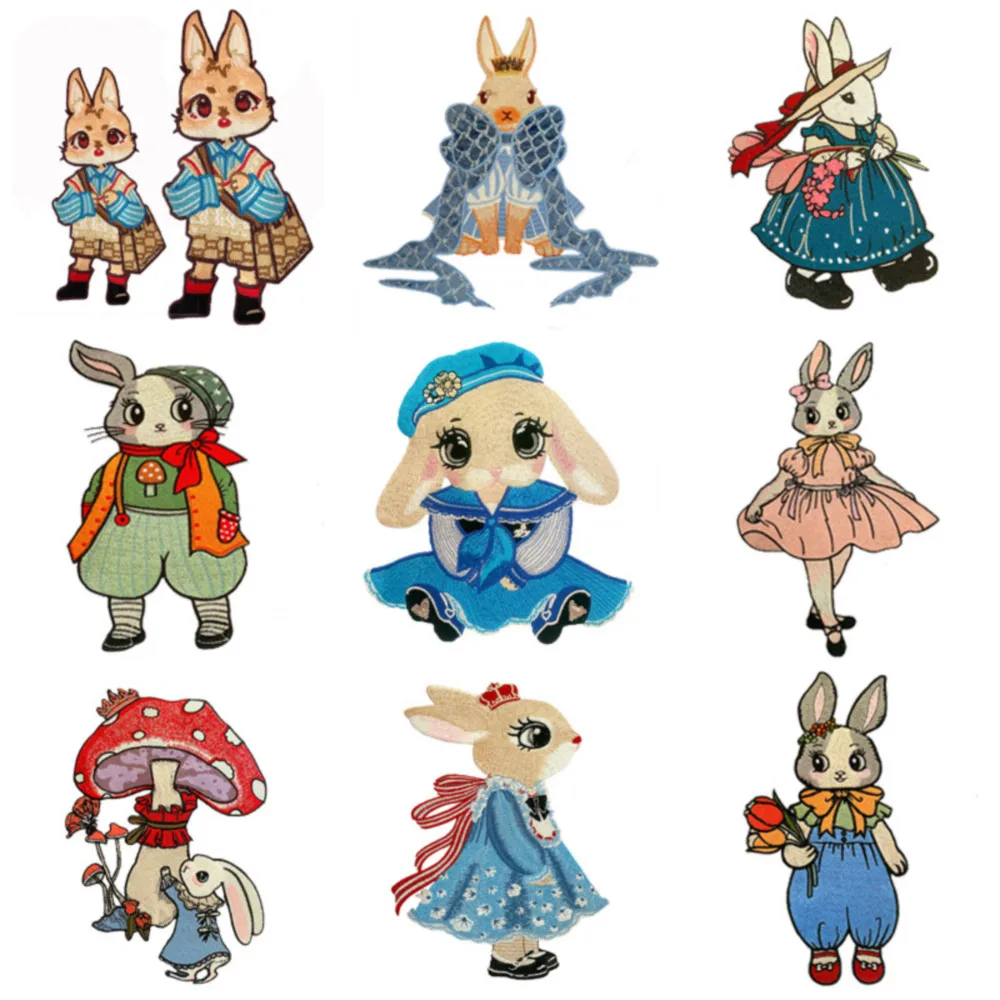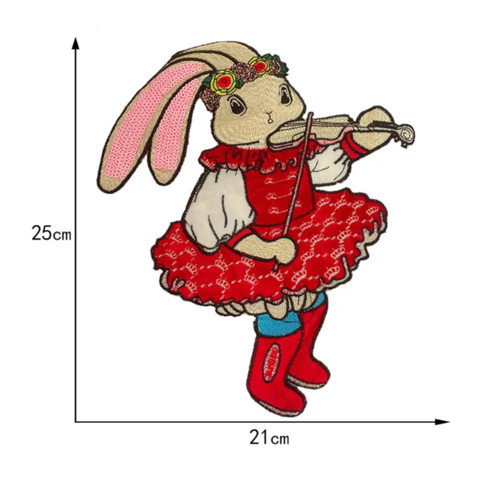 Parches bordados de conejo de dibujos animados grandes, apliques de ropa para coser, pegatinas decorativas de animales lindos en chaquetas, parche cosido en camiseta
