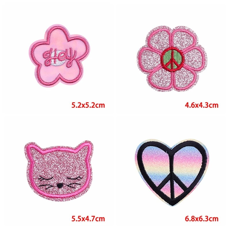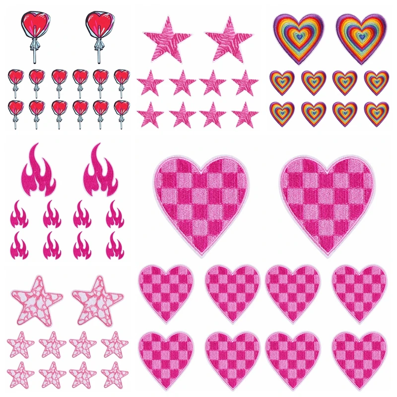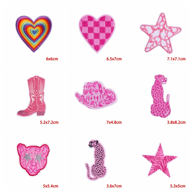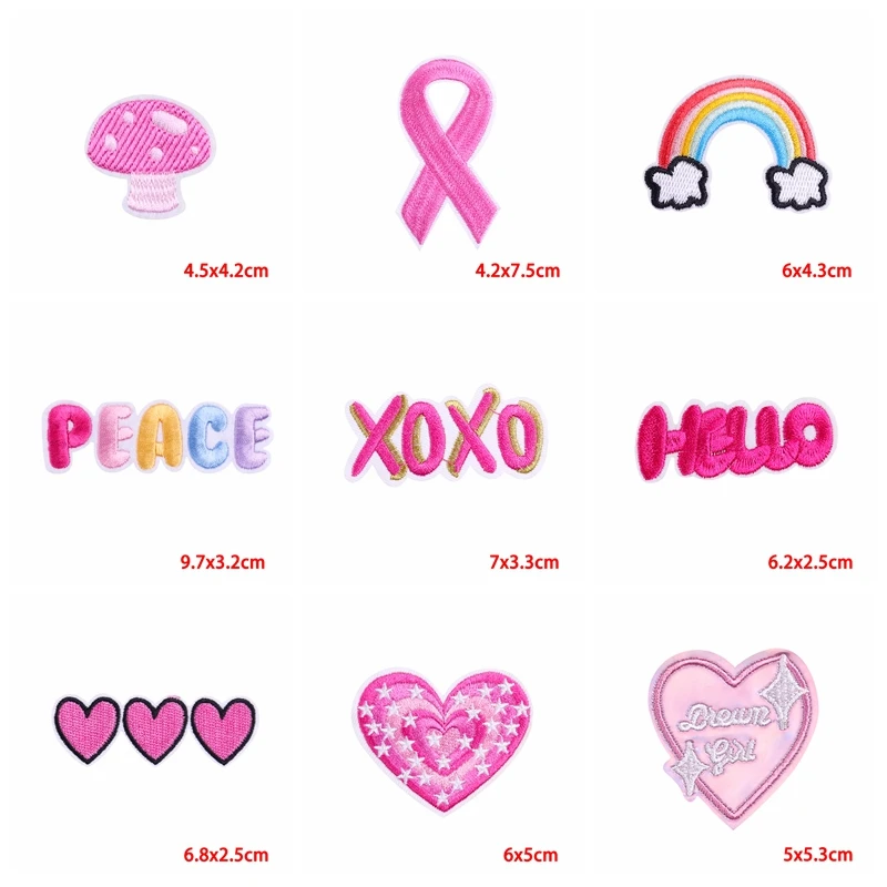 Parches bordados de corazón de amor de dibujos animados, estilo rosa, parches termoadhesivos para ropa, bricolaje, 10 unids/lote